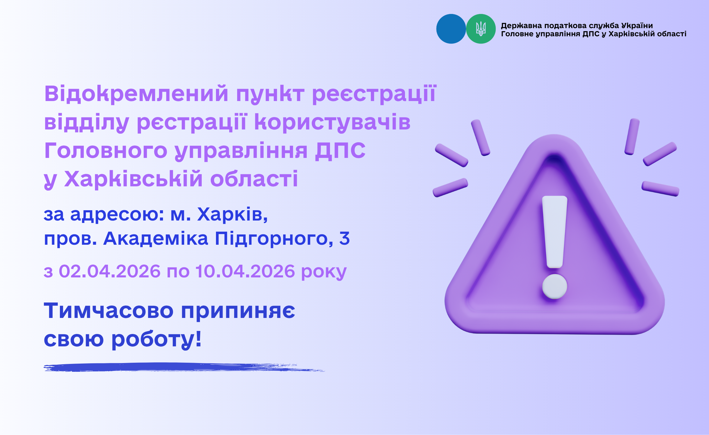 Відокремлений пункт реєстрації відділу реєстрації користувачів ГУ ДПС у Харківській області тимчасово припиняє свою роботу!
