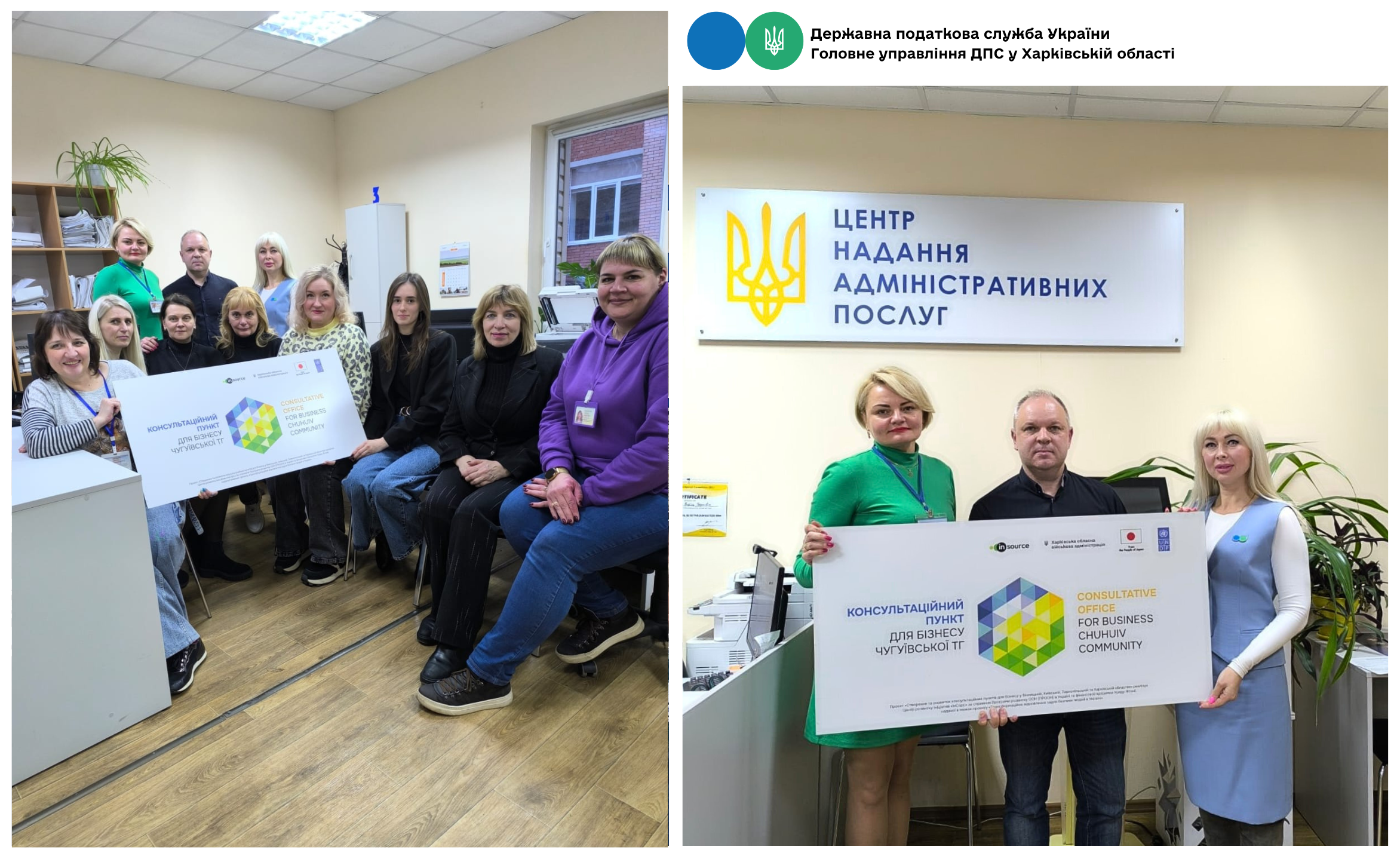 Днями, в рамках реалізації проєкту «Консультативний пункт для бізнесу», у Центрі надання адміністративних послуг Чугуївської територіальної громади відбулась робоча зустріч представників Чугуївської державної податкової інспекції Головного управління ДПС у Харківській області з фахівцями ЦНАП Чугуївської територіальної громади.