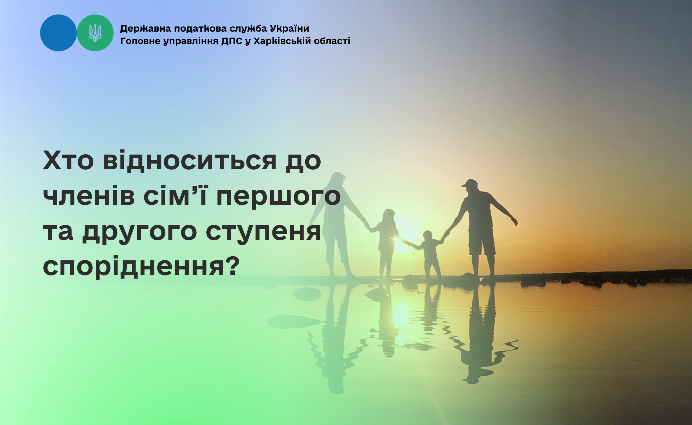 Головне управління ДПС у Харківській області інформує, що відповідно до п. п. 14.1.263 п. 14.1 ст. 14 Податкового кодексу України (далі – ПКУ) членами сім’ї фізичної особи першого ступеня споріднення для цілей розділу IV ПКУ вважаються її батьки, її чоловік або дружина, діти такої фізичної особи, у тому числі усиновлені.