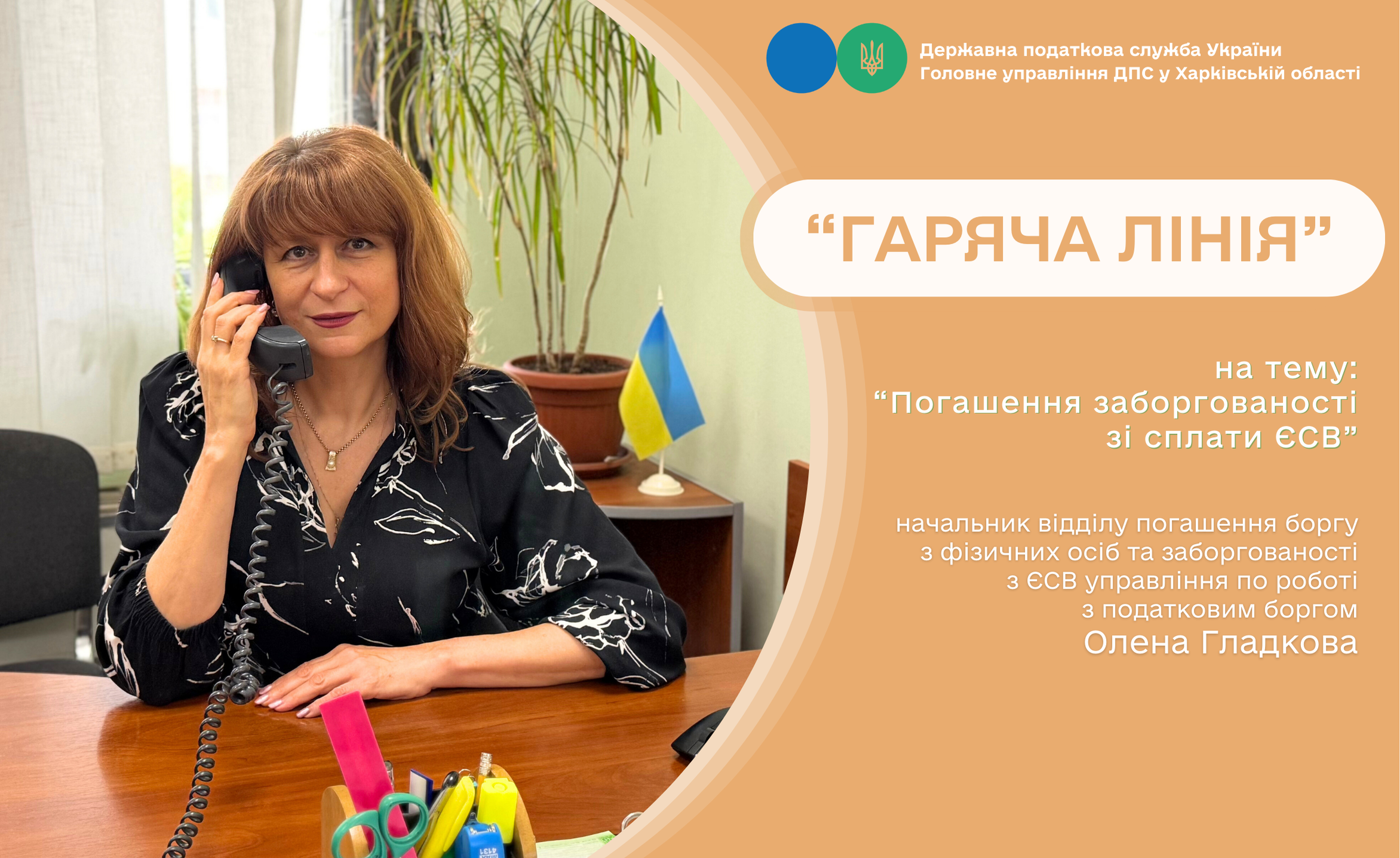 Черговий сеанс телефонного зв’язку «гаряча лінія» з питань погашення заборгованості зі сплати єдиного соціального внеску відбувся у Головному управлінні ДПС у Харківській області за участю начальника відділу погашення боргу з фізичних осіб та заборгованості з ЄСВ управління по роботі з податковим боргом Олени Гладкової.