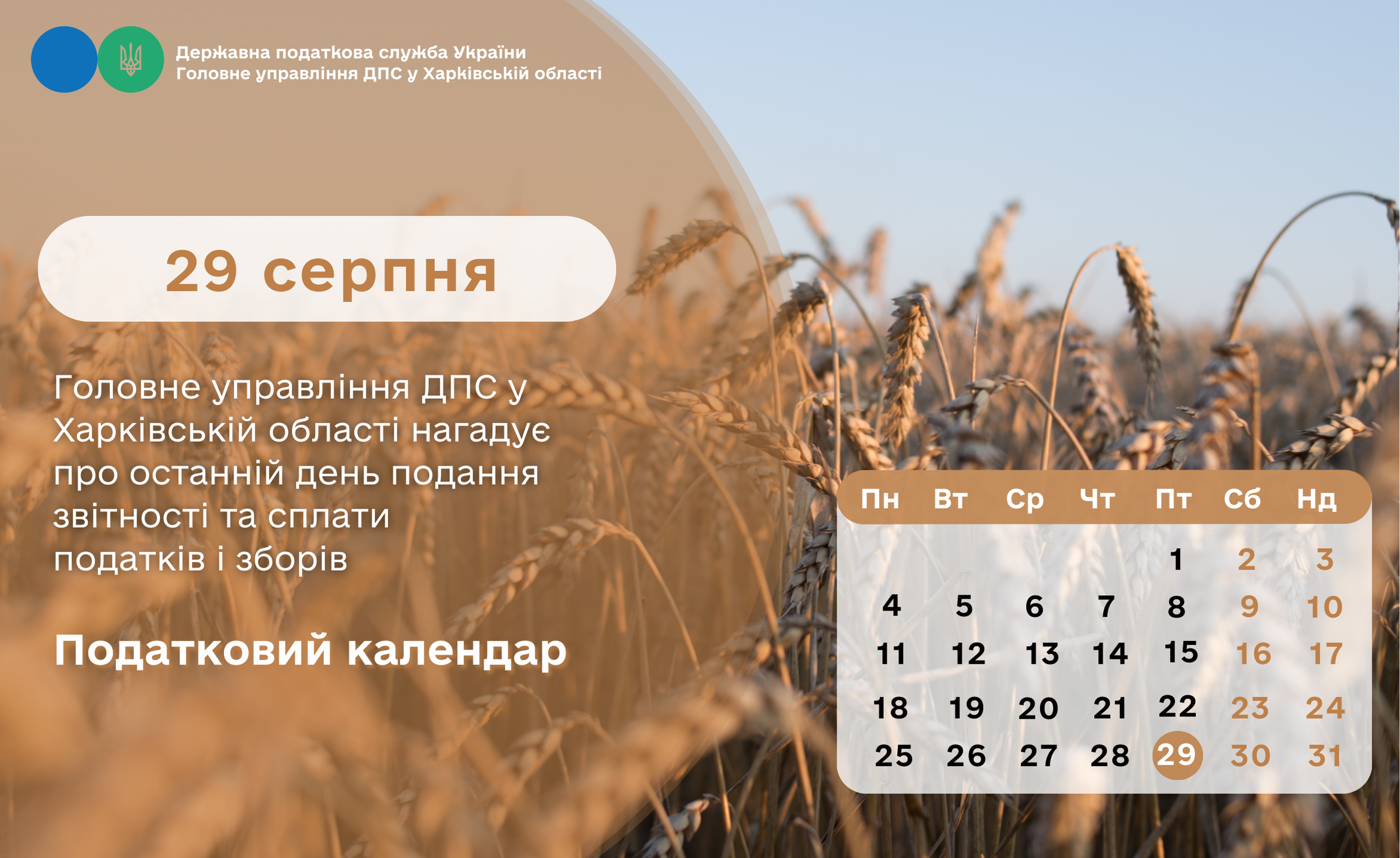 Головне управління ДПС у Харківській області повідомляє, що 29 серпня 2025: