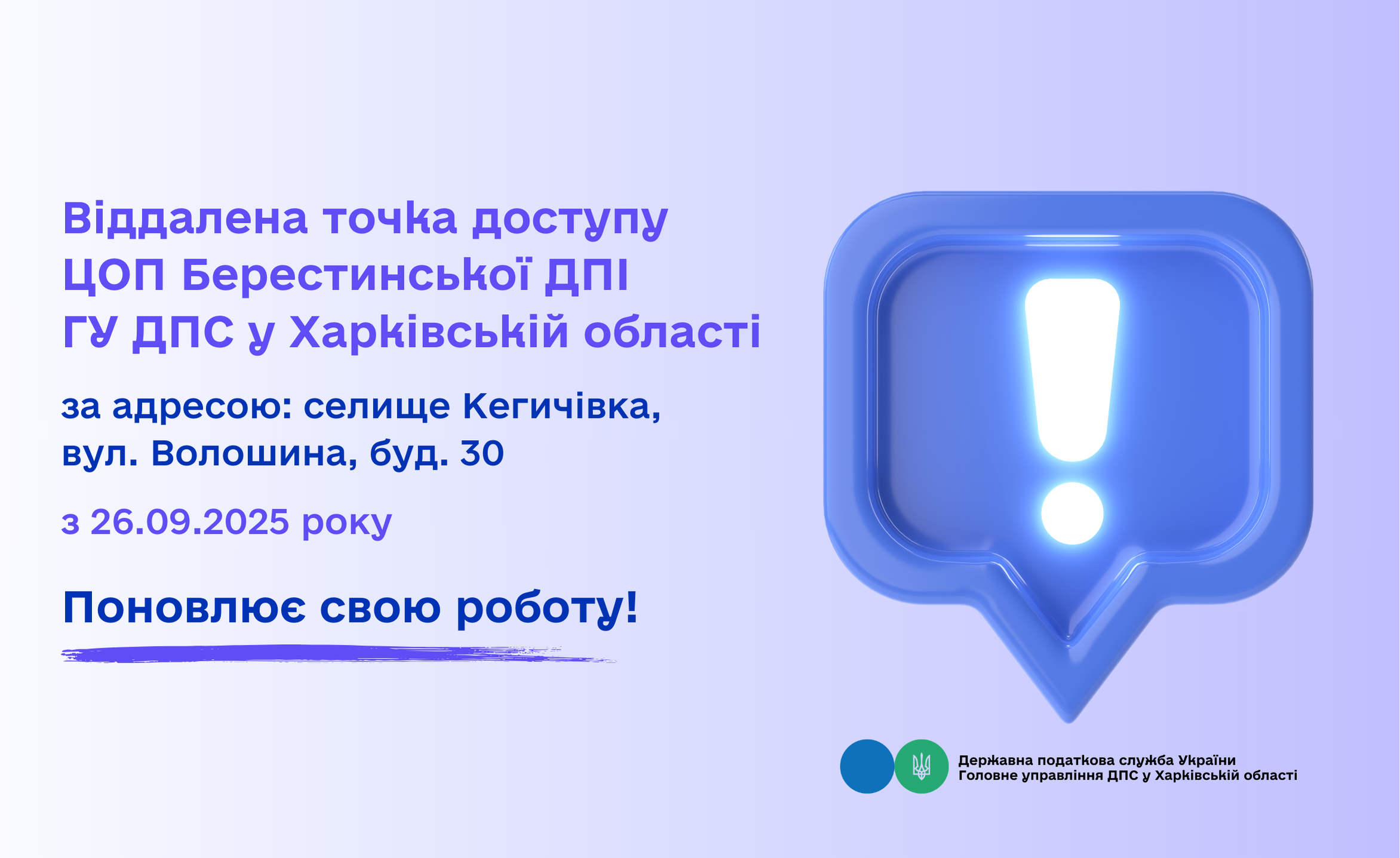 Віддалена точка доступу ЦОП Берестинської ДПІ у селищі Кегичівка поновлює свою роботу!