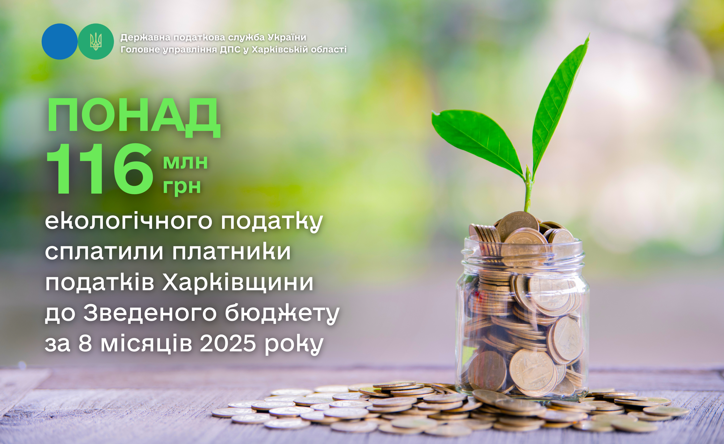 Платники Харківщини сплатили понад 116 мільйонів гривень екологічного податку за 8 місяців 2025 року до Зведеного бюджету