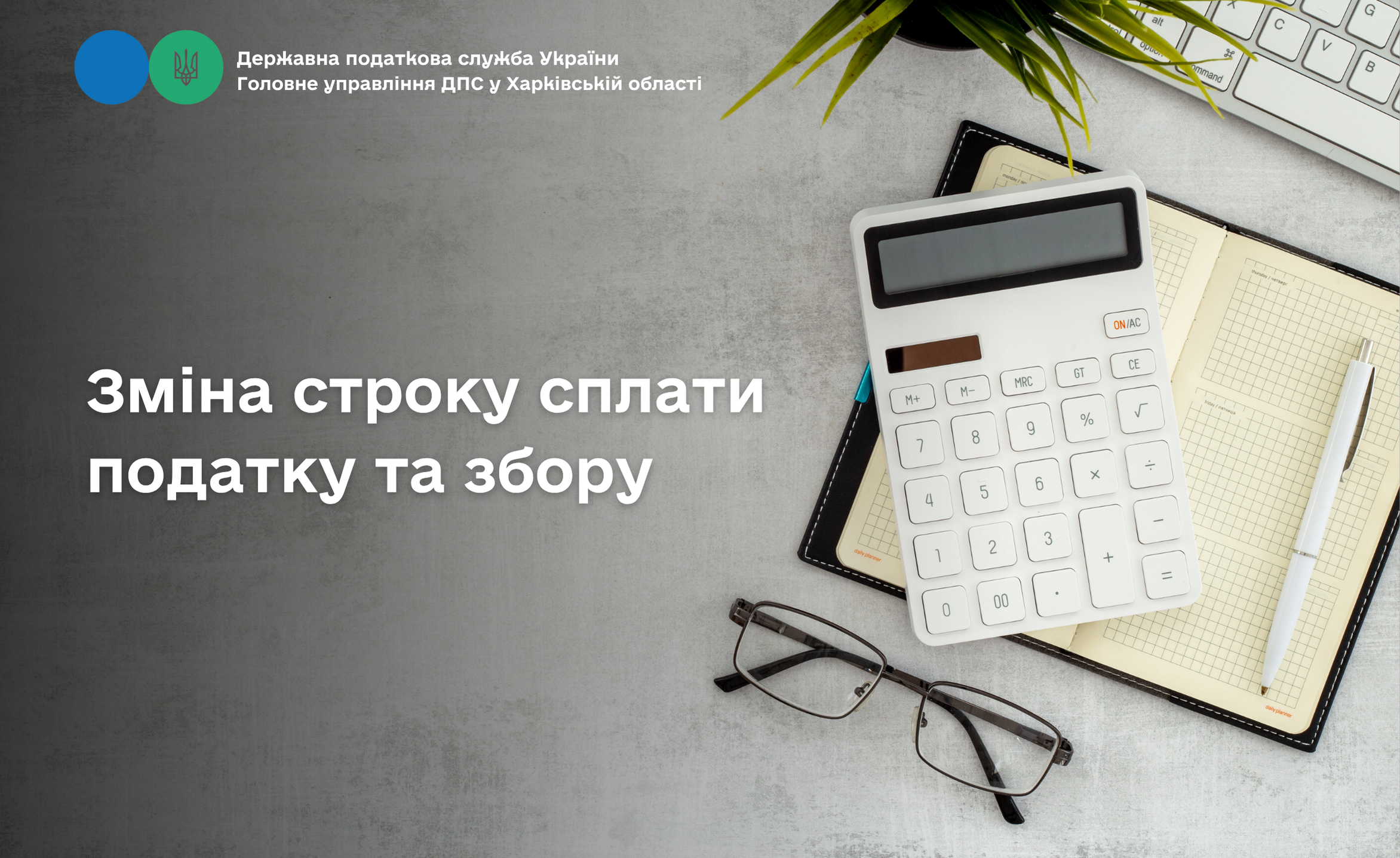 Головне управління ДПС у Харківській області інформує, що відповідно до статті 32 Податкового кодексу України зміна строку сплати податку та збору здійснюється шляхом перенесення встановленого податковим законодавством строку сплати податку та збору або його частини на більш пізній строк.