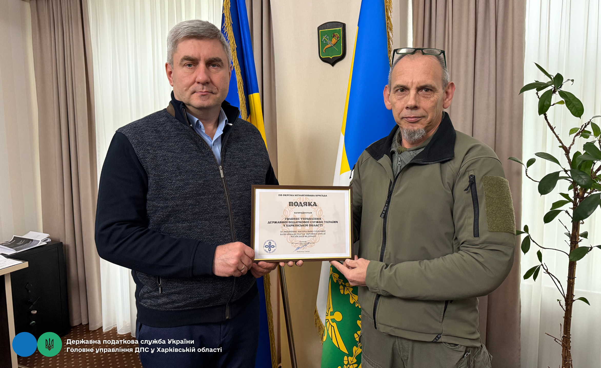 Під час зустрічі колектив Головного управління ДПС у Харківській області було нагороджено подякою окремої механізованої бригади Збройних Сил України за зміцнення матеріально-технічної бази бригади під час збройної агресії російської федерації.