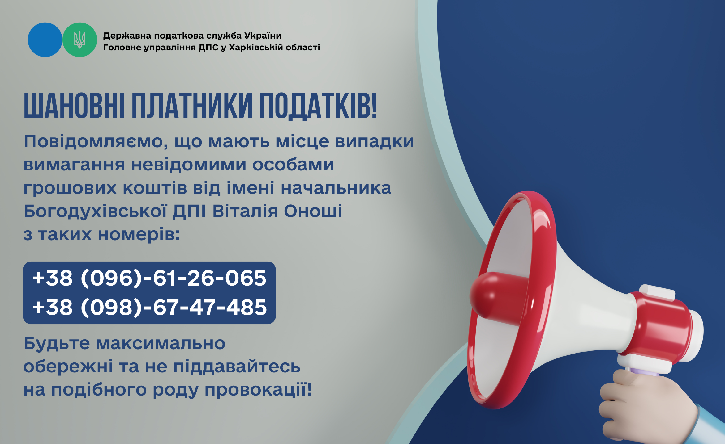 У разі таких телефонних дзвінків не замовчуйте факти, негайно телефонуйте на Антикорупційний сервіс ДПС України «Пульс» за тел. 0-800-501-007  (напрям 5) та до правоохоронних органів.