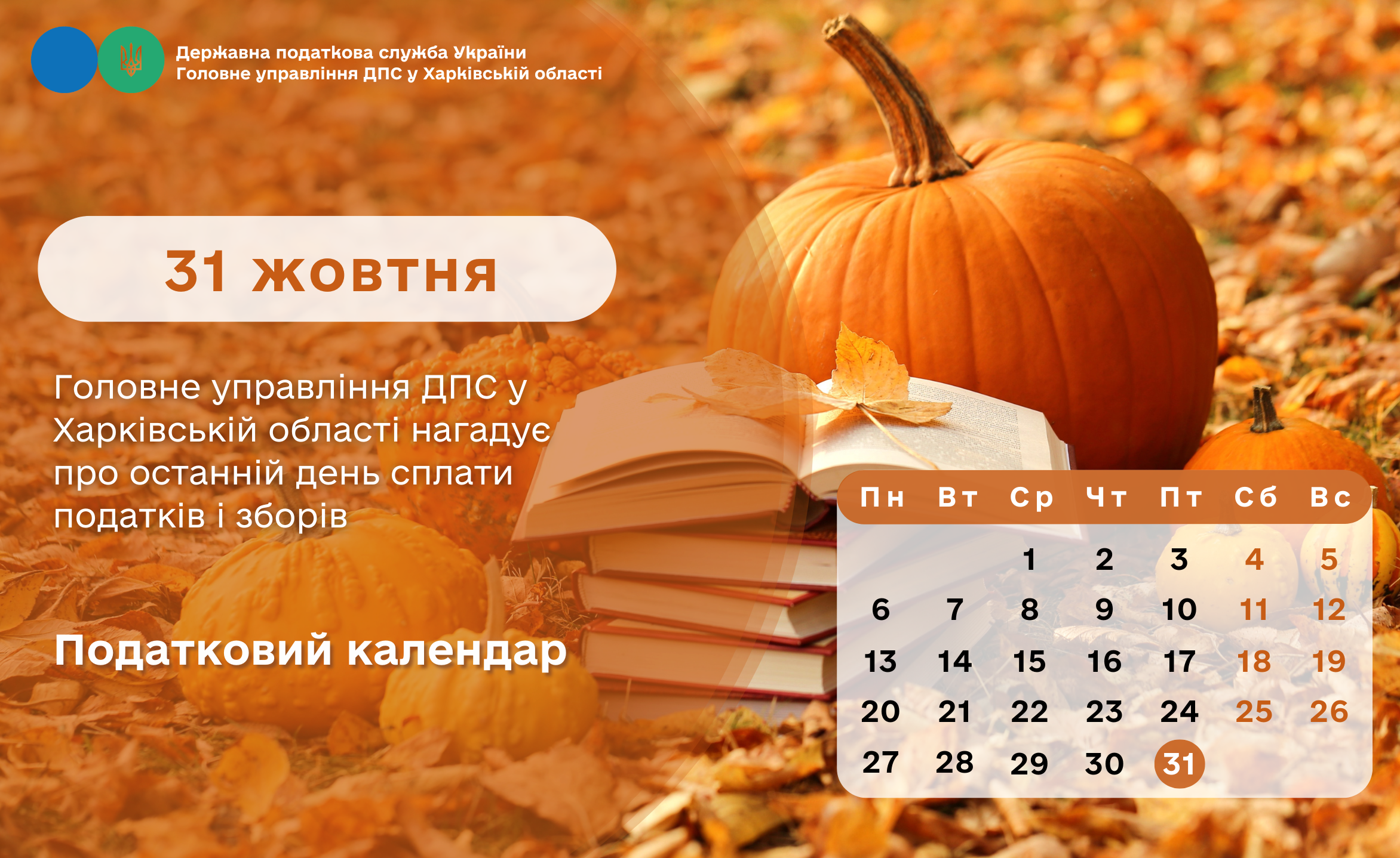 Головне управління ДПС у Харківській області повідомляє, що 31 жовтня 2025: