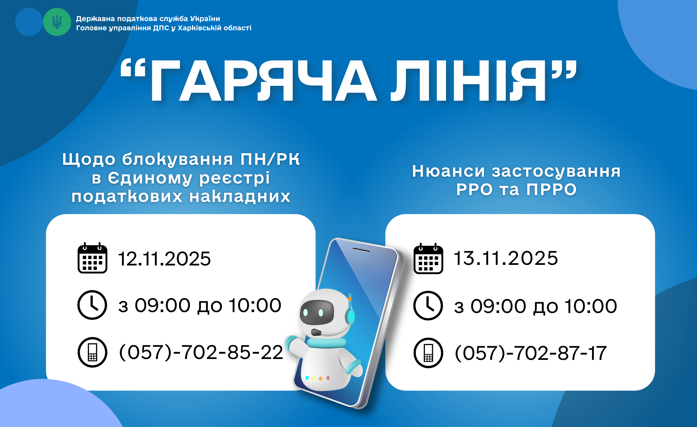 Анонс «гарячих ліній» Головного управління ДПС у Харківській області з 10.10.2025 по 14.10.2025