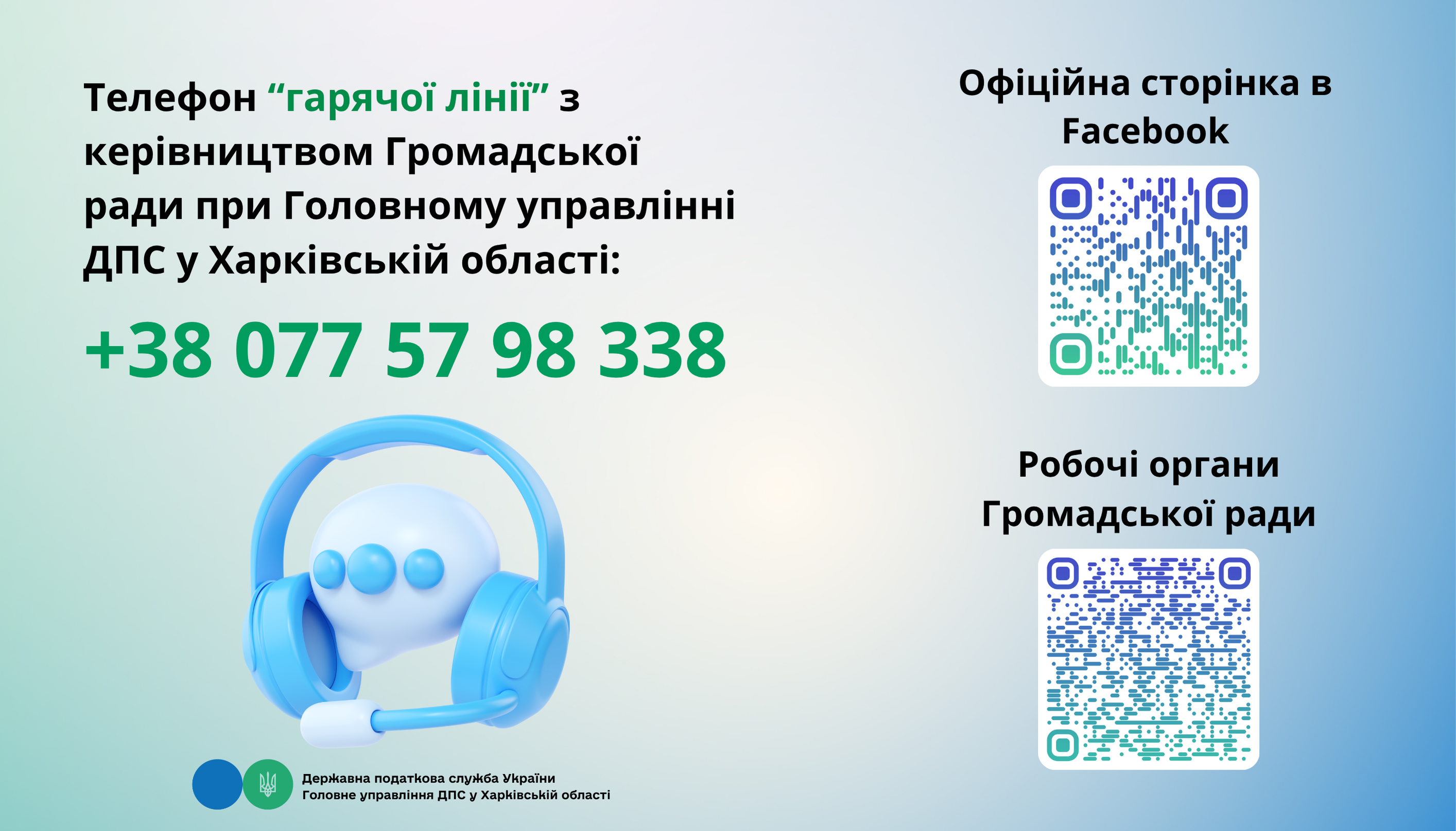 Телефони "гарячої лінії" з керівництвом Громадської ради при Головному управлінні ДПС у Харківській області
