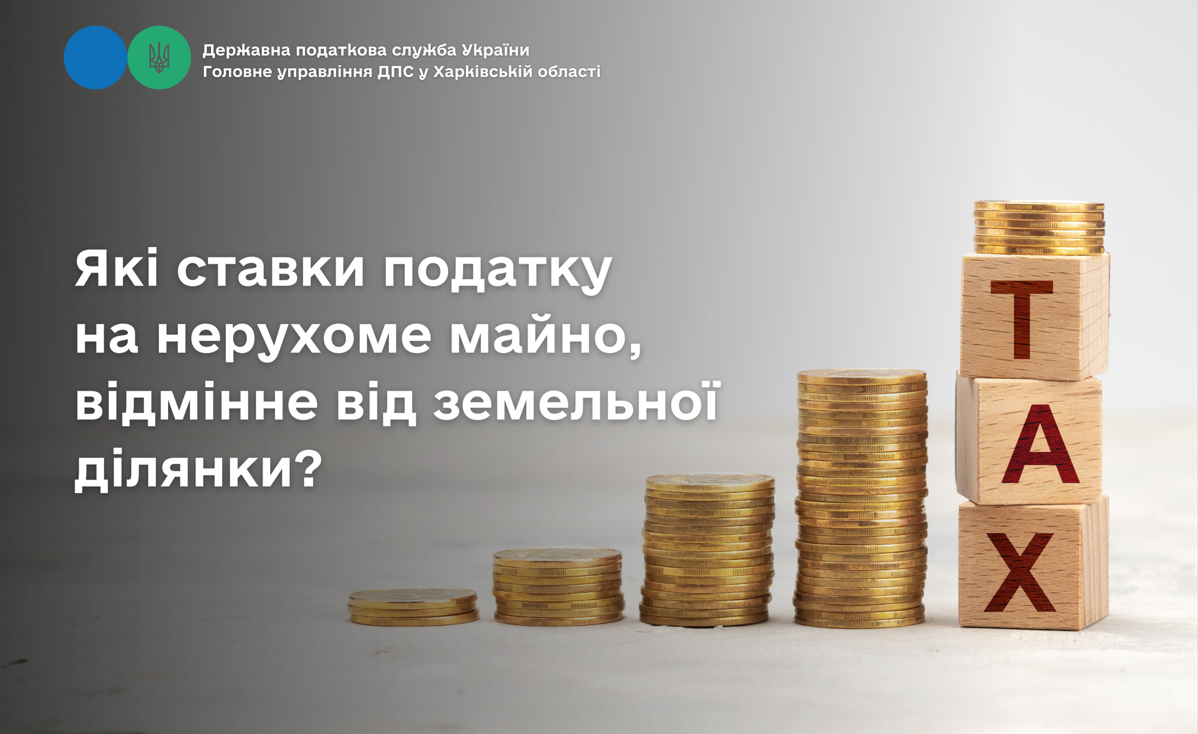 Головне управління ДПС у Харківській інформує, що відповідно до п.п.266.5.1 п.266.5 ст. 266 Податкового кодексу України ставки податку для об’єктів житлової та/або нежитлової нерухомості, що перебувають у власності фізичних та юридичних осіб, встановлюються за рішенням сільської, селищної, міської ради залежно від місця розташування (зональності) та типів таких об’єктів нерухомості у розмірі, що не перевищує 1,5 відсотка розміру мінімальної заробітної плати, встановленої законом на 1 січня звітного (податкового) року, за 1 квадратний метр бази оподаткування.