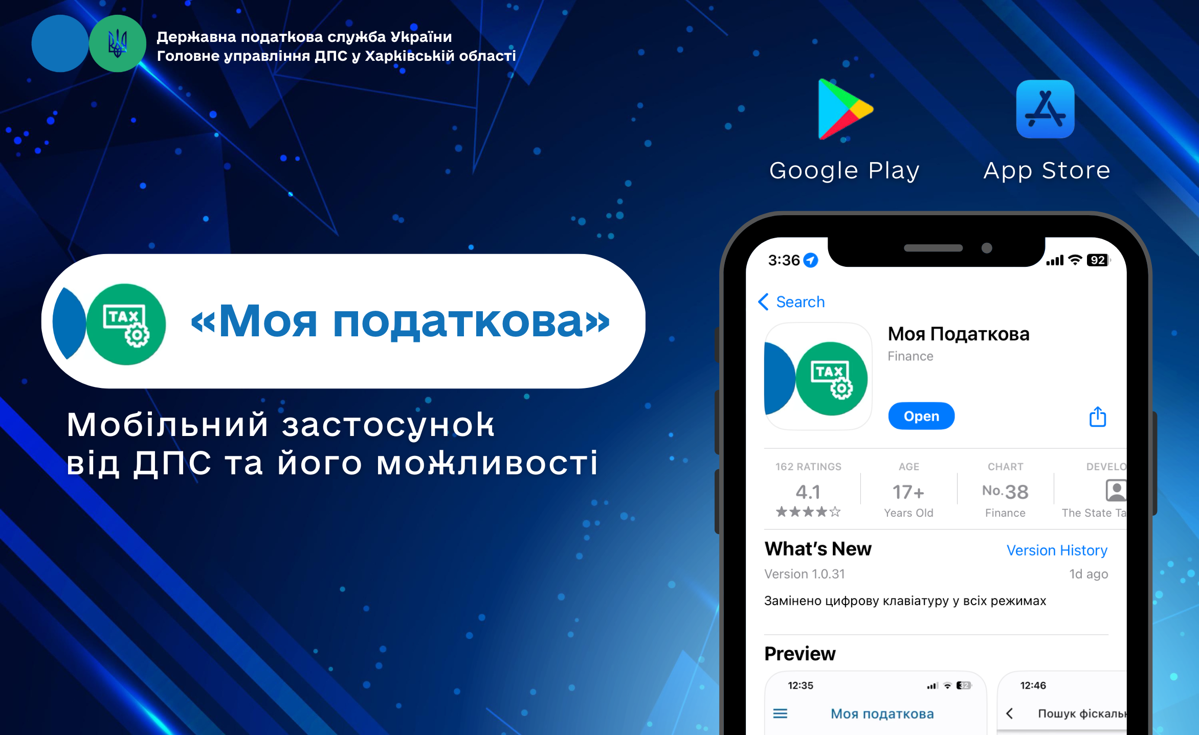 Головне управління ДПС у Харківській області нагадує, що на цифрових платформах iOS та Android впроваджено мобільний застосунок від ДПС «Моя податкова», який надає можливість громадянам та фізичним особам-підприємцям: