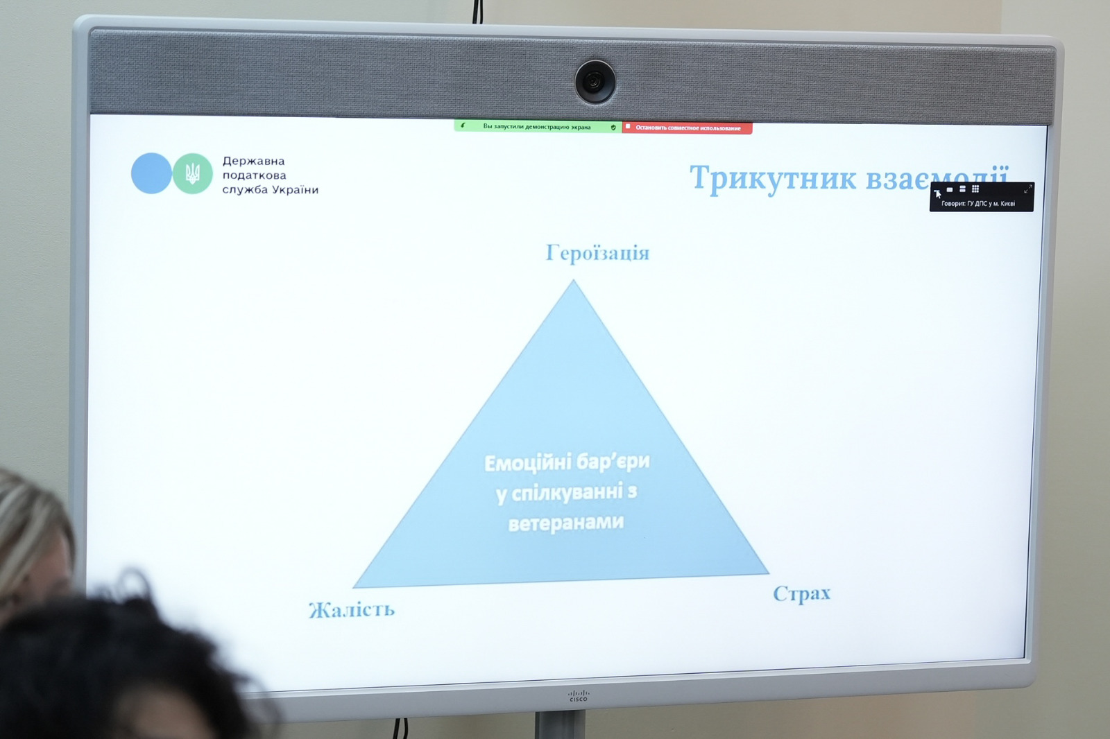 Як вибудовувати комунікацію поваги та підтримки з людьми, які повернулися з війни, і членами їхніх сімей, а також як правильно й тактовно взаємодіяти з тими, хто має інвалідність, навчали працівників ДПС та територіальних органів, які щодня контактують із платниками податків.