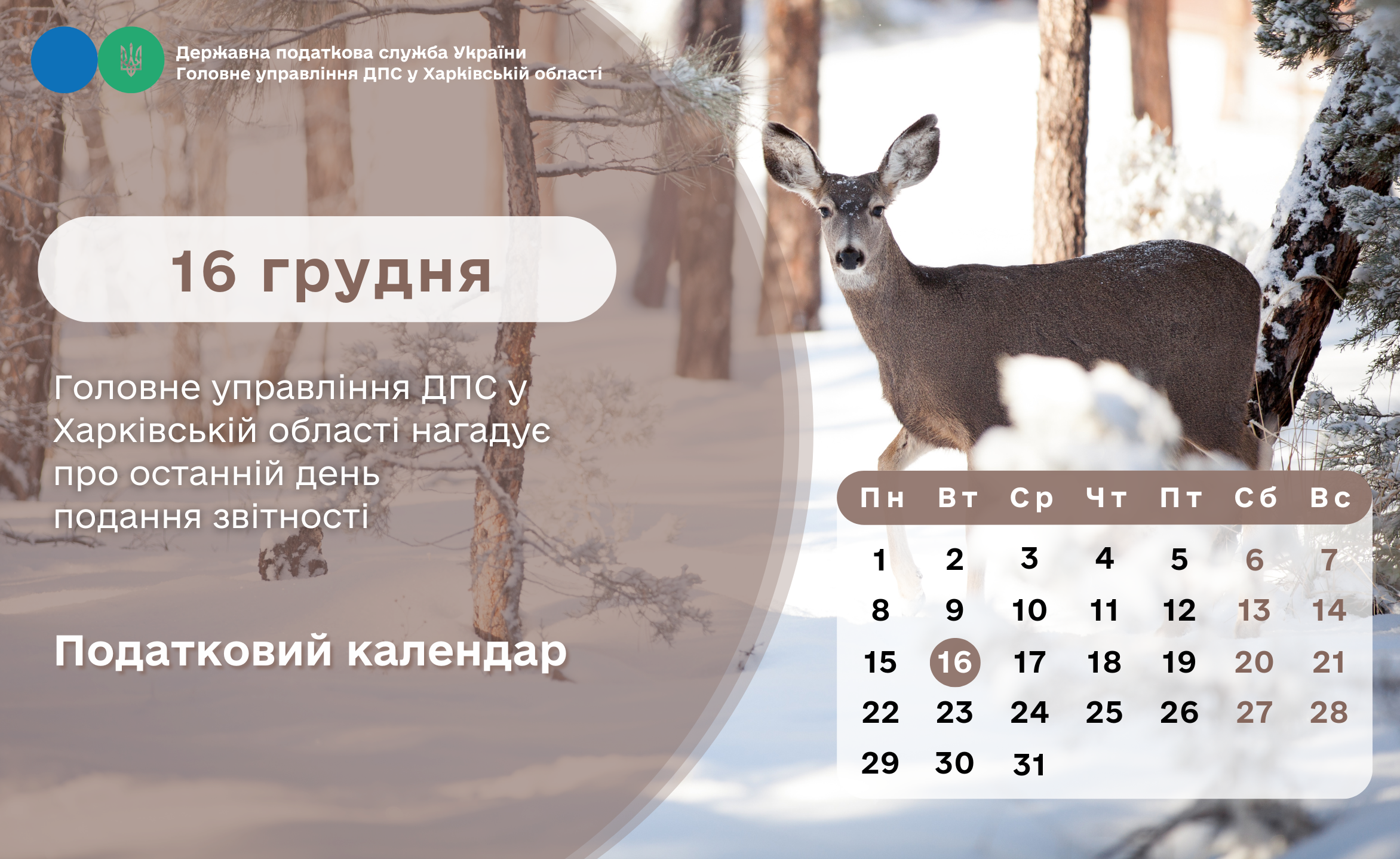 Податковий календар: 16 грудня 2025 року