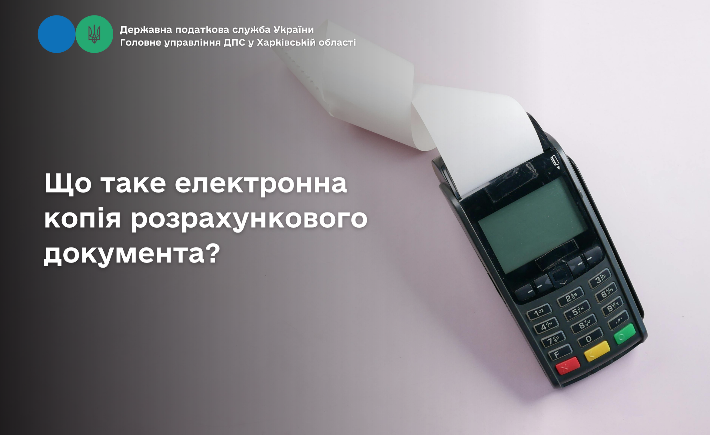 Головне управління ДПС у Харківській області повідомляє, що відповідно до ст. 2 Закону України від 06 липня 1995 року № 265/95-ВР «Про застосування реєстраторів розрахункових операцій у сфері торгівлі, громадського харчування та послуг» із змінами, електронна копія розрахункового документа – це ідентична копія (у формі електронних даних) розрахункового документа, створеного реєстратором розрахункових операцій, яка міститься на контрольній стрічці в пам’яті реєстраторів розрахункових операцій або в пам’яті модемів, які до них приєднані, та/або створена програмним реєстратором розрахункових операцій у електронній формі, що може використовуватися контролюючими органами як податкова інформація та під час проведення перевірок платників податків.