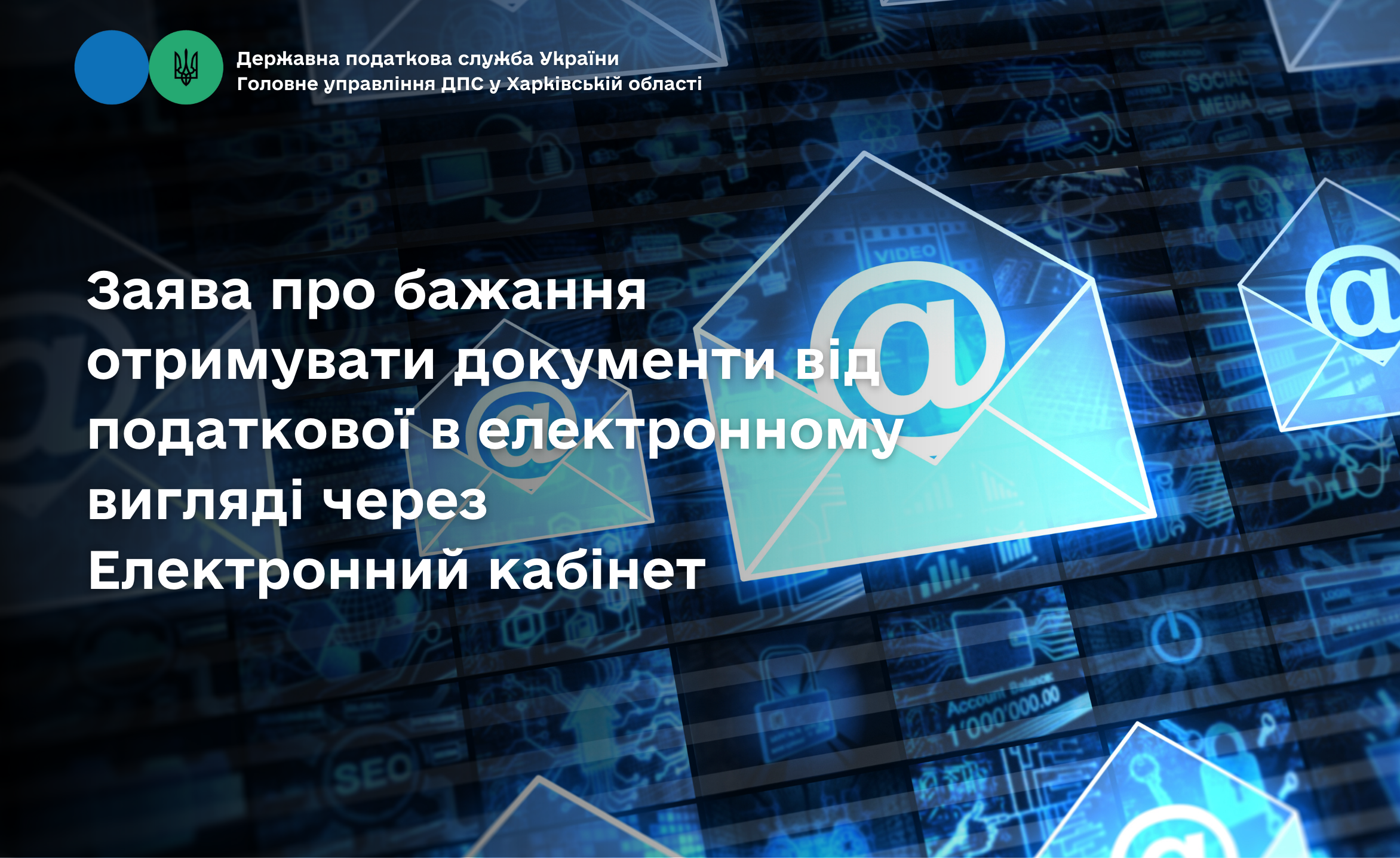 Головне управління ДПС у Харківській області інформує, що для подання Заяви про бажання отримувати документи через Електронний кабінет платнику податків необхідно: