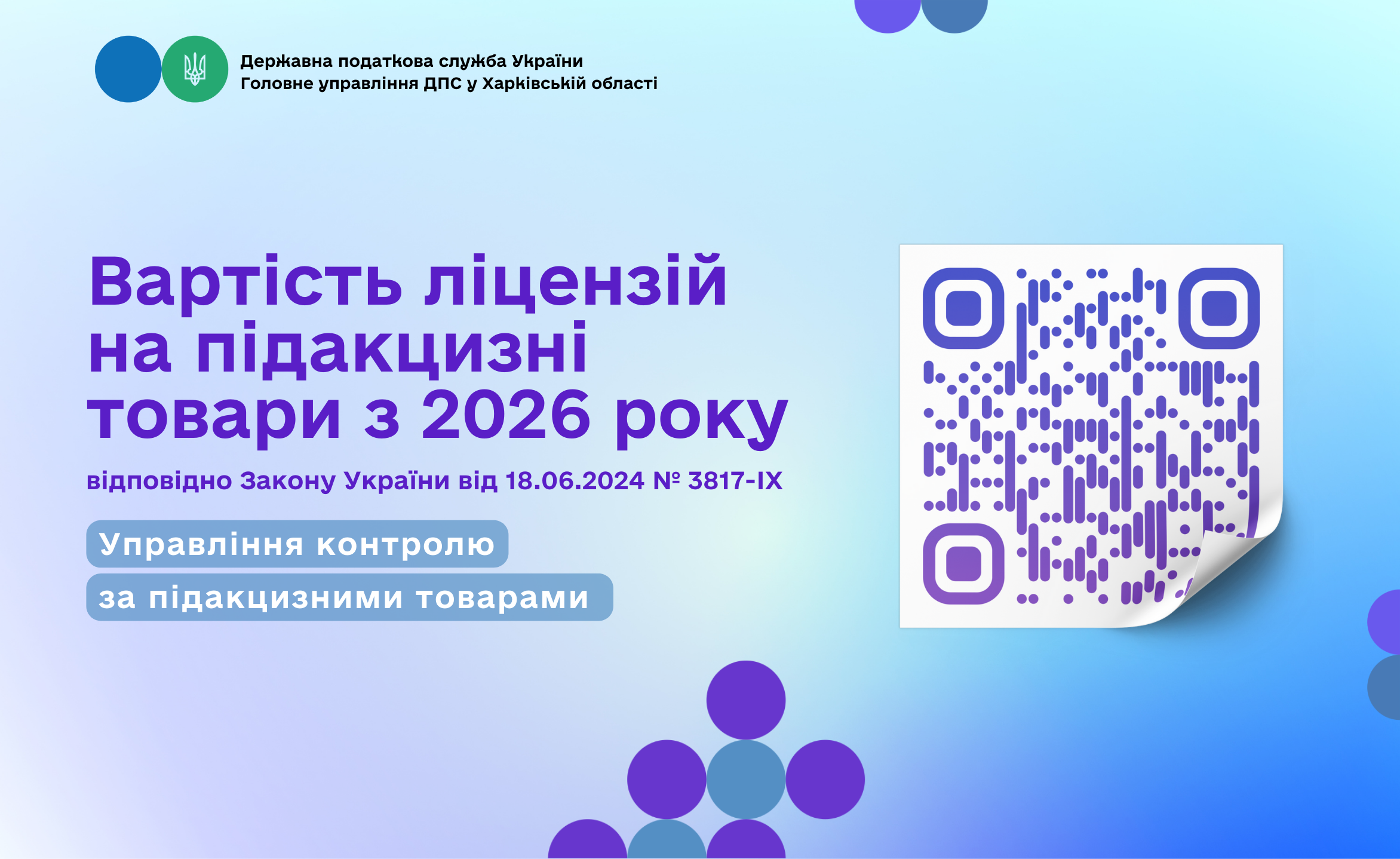 Головне управління ДПС у Харківській області інформує, що з 1 січня 2026 року застосовуватимуться оновлені розміри плати за ліцензії на діяльність у сфері виробництва та обігу підакцизних товарів відповідно до Закону України від 18.06.2024 № 3817-IX.
