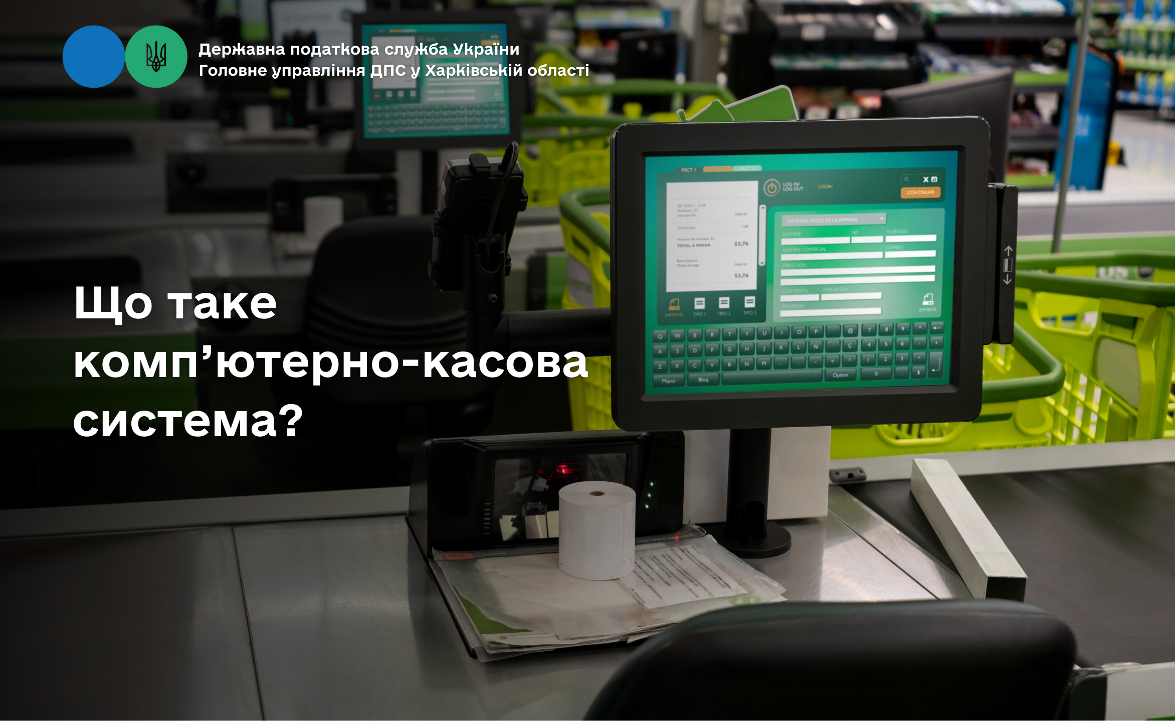 Головне управління ДПС у Харківській області повідомляє, що відповідно до ст. 2 Закону України від 06 липня 1995 року № 265/95-ВР «Про застосування реєстраторів розрахункових операцій у сфері торгівлі, громадського харчування та послуг» із змінами, комп'ютерно-касова система – це реєстратор розрахункових операцій, виконаний із застосуванням комп'ютерних засобів, який додатково виконує технологічні операції, визначені сферою його застосування, і забезпечує друкування розрахункових та інших звітних документів.
