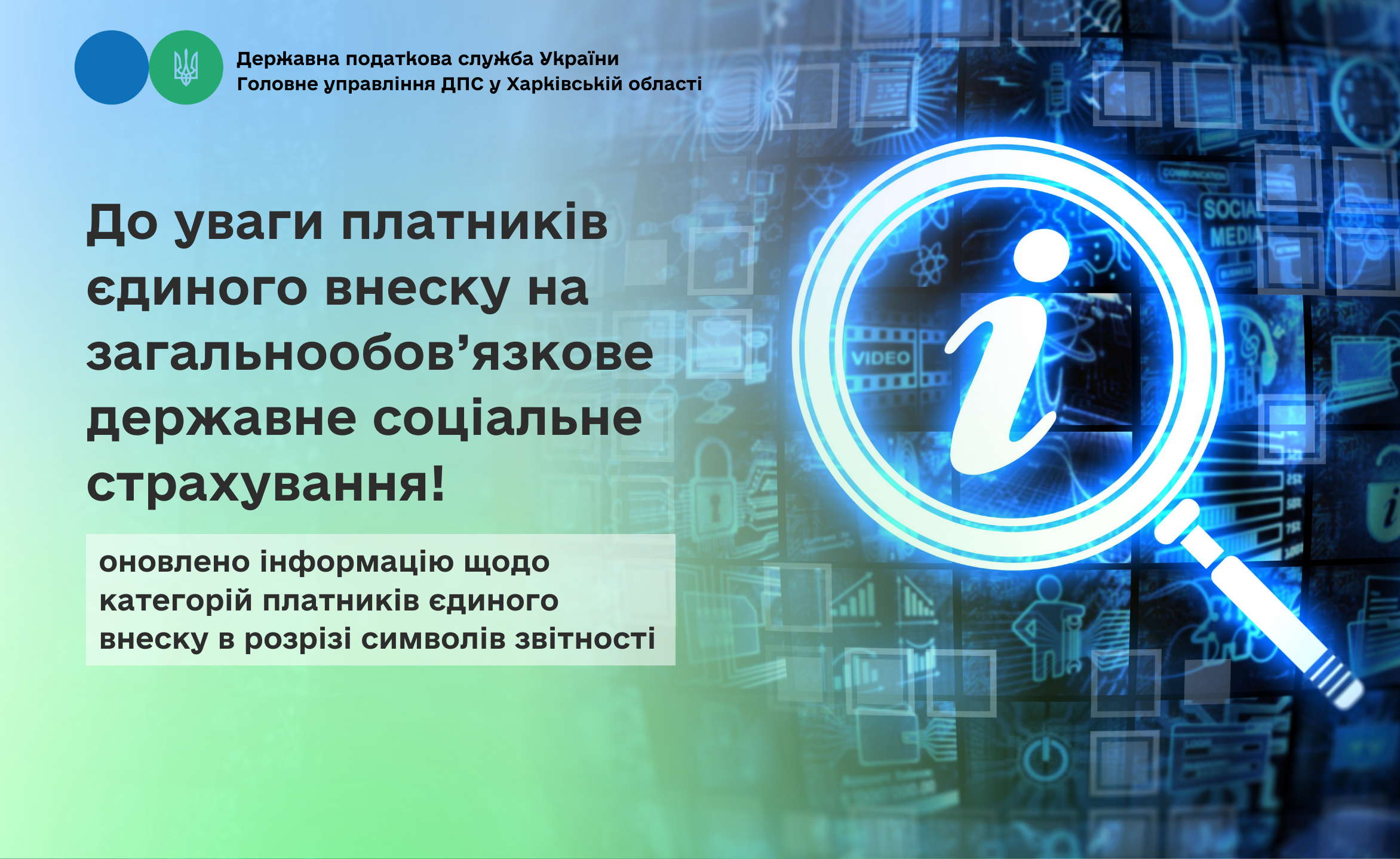 До уваги платників! Оновлено інформацію щодо категорій платників єдиного внеску в розрізі символів звітності