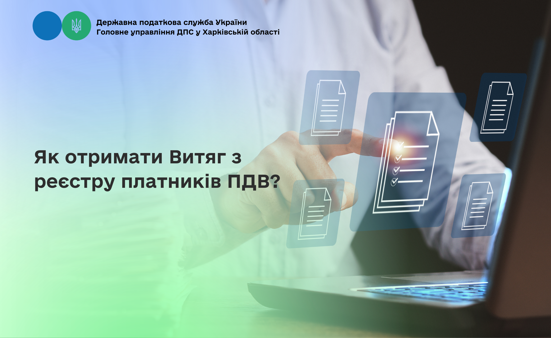Головне управління ДПС у Харківській області повідомляє, що відповідно до п. 183.11 ст. 183 розділу V Податкового кодексу України та Положення про реєстрацію платників податку на додану вартість, затвердженого наказом Міністерства фінансів України від 14.11.2014 № 1130, зареєстрованого в Міністерстві юстиції України 17.11.2014 за № 1456/26233 (розділ VII) (далі – Положення №1130) платник ПДВ може подати Запит про отримання витягу з реєстру платників податку на додану вартість до контролюючого органу за основним місцем обліку платника в один із таких способів: