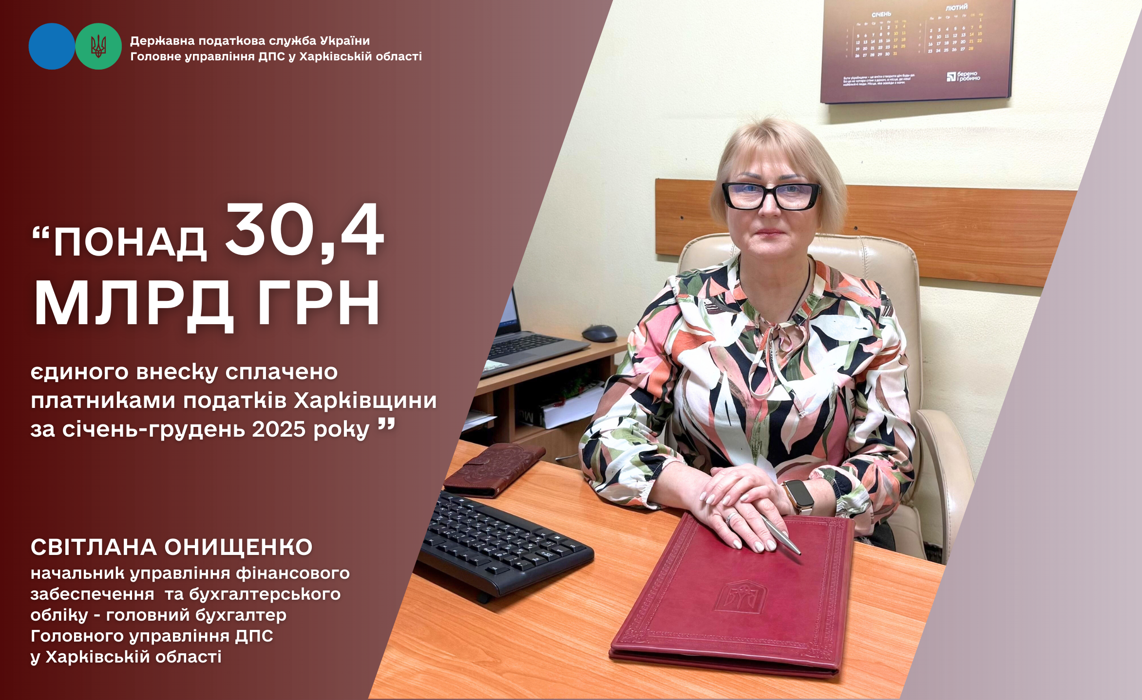 За 2025 рік платниками податків Харківщини сплачено понад 30,4 млрд грн єдиного внеску