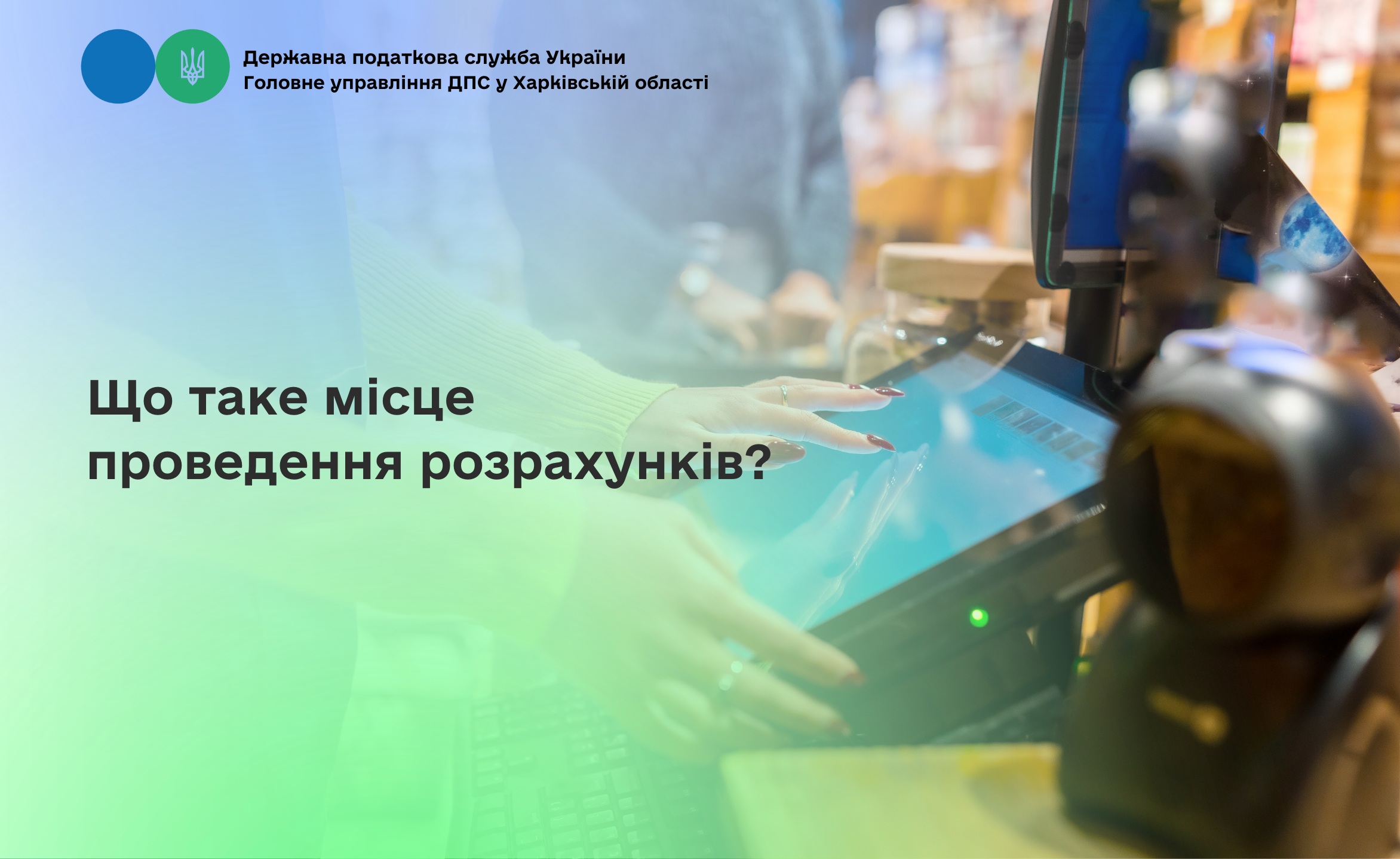 Головне управління ДПС у Харківській області повідомляє, що відповідно до ст. 2 Закону України від 06 липня 1995 року № 265/95-ВР «Про застосування реєстраторів розрахункових операцій у сфері торгівлі, громадського харчування та послуг» із змінами, місце проведення розрахунків – це місце, де здійснюються розрахунки із покупцем за продані товари (надані послуги) та зберігаються отримані за реалізовані товари (надані послуги) готівкові кошти, а також місце отримання покупцем попередньо оплачених товарів (послуг) із застосуванням платіжних карток, платіжних чеків, жетонів тощо.