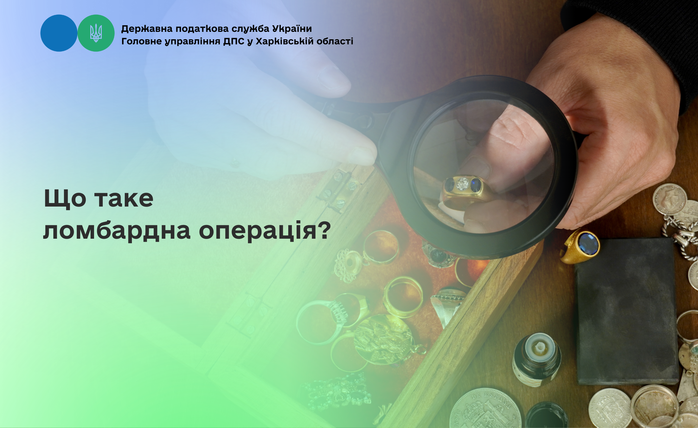 Головне управління ДПС у Харківській області інформує, що відповідно до п. п. 14.1.100 п. 14.1 ст. 14 Податкового кодексу України ломбардна операція – це операція, що здійснюється фізичною чи юридичною особою, з отримання коштів від юридичної особи, що є фінансовою установою, згідно із законодавством України, під заставу товарів або валютних цінностей. Ломбардні операції є різновидом кредиту під заставу.