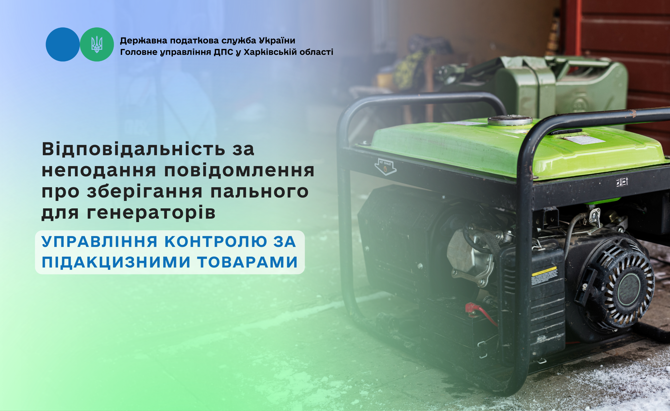 Управління контролю за підакцизними товарами Головного управління ДПС у Харківській області інформує, що під час дії воєнного стану дозволено зберігати до 2000 літрів пального на кожному об`єкті, де розміщено генератор, без необхідності отримання ліцензії. Це передбачено пунктом 24 розділу 13 Перехідних положень Закону України від 18 червня 2024 року № 3817-ІХ «Про державне регулювання виробництва і обігу спирту етилового, спиртових дистилятів, біоетанолу, алкогольних напоїв, тютюнових виробів, тютюнової сировини, рідин, що використовуються в електронних сигаретах, та пального» зі змінами. Пальне має використовуватись виключно для генераторної установки. При цьому, пальне в баку самого генератора до цього обсягу не враховується.