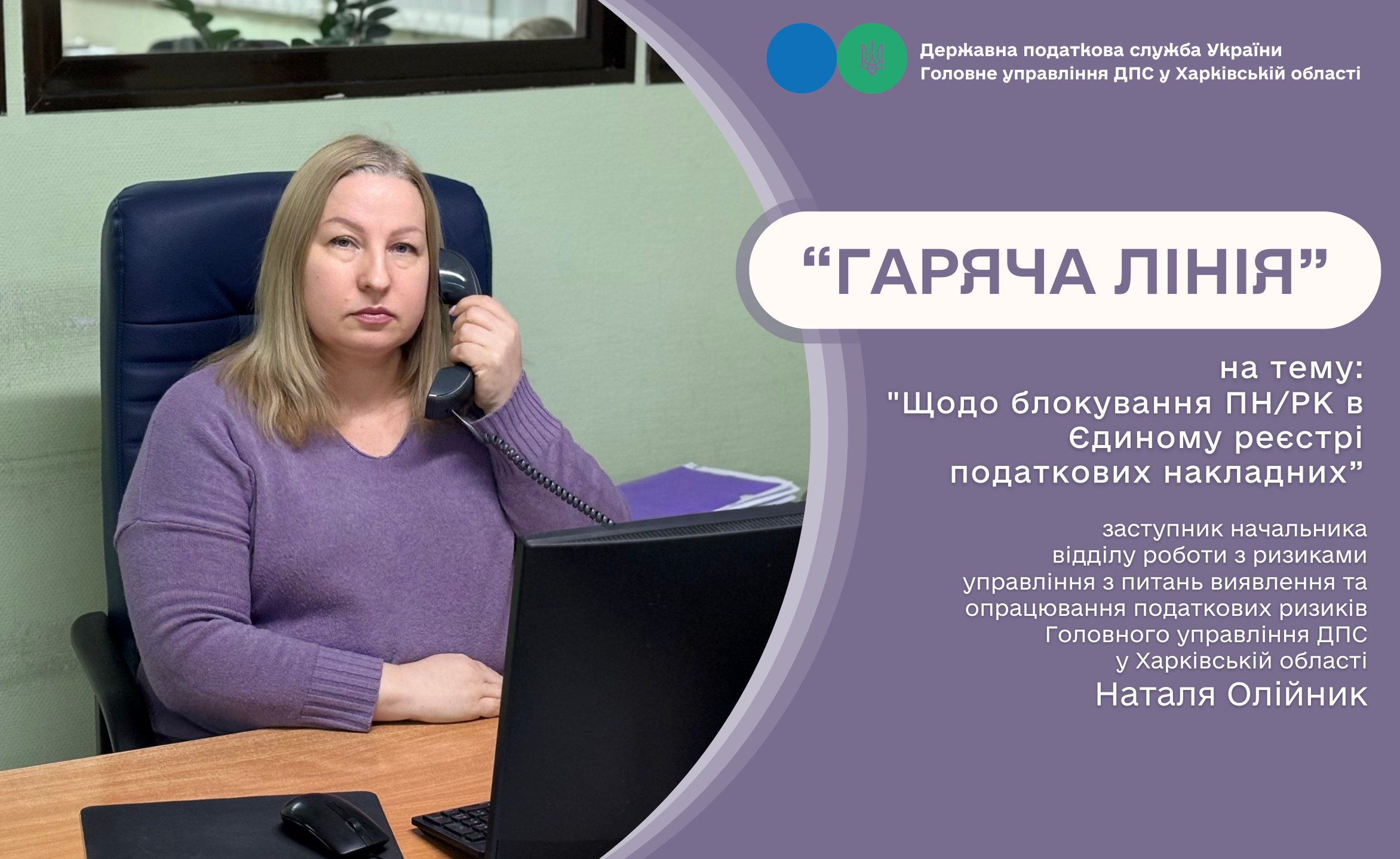 У Головному управлінні ДПС у Харківській області проведено черговий сеанс телефонного зв’язку «гаряча лінія» з питань блокування податкових накладних та розрахунків коригування в Єдиному реєстрі податкових накладних.