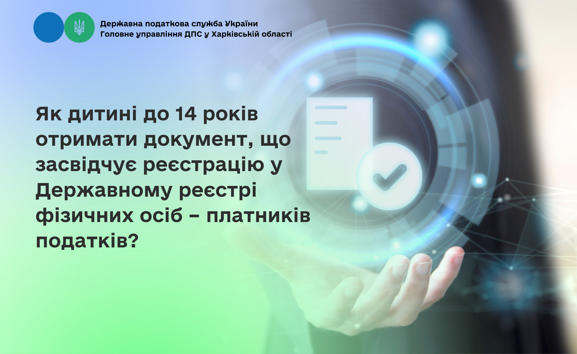 Як дитині до 14 років отримати документ, що засвідчує реєстрацію у Державному реєстрі фізичних осіб – платників податків?