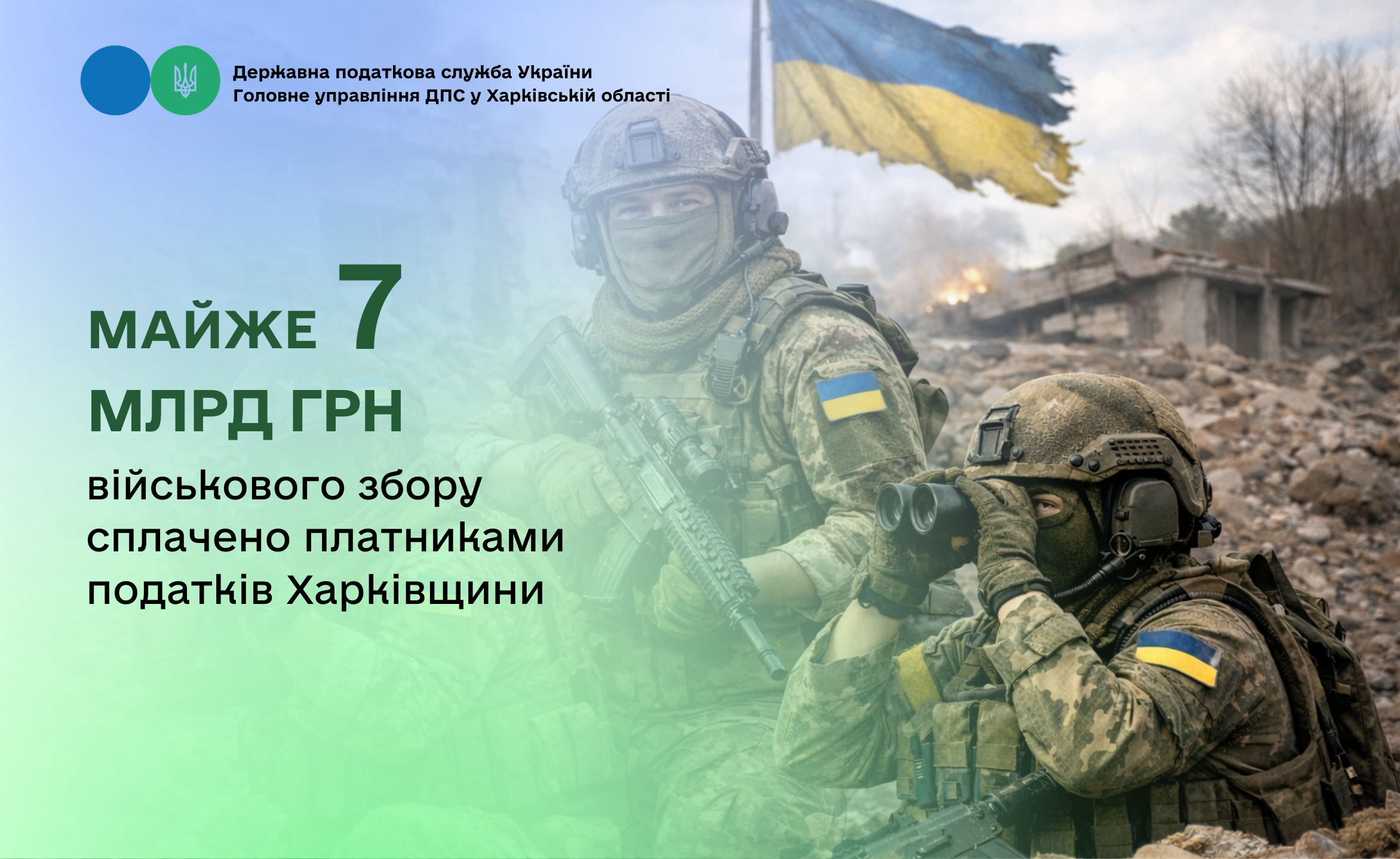 За січень 2026 року платники податків Харківщини перерахували до бюджету країни 647,7 млн грн військового збору, що на 191,2 млн грн або на 41,9 % більше ніж за аналогічний період минулого року. Показник доходів бюджету ДПС України перевиконано на 9,6 %, додатково отримано 56,9 млн гривень.