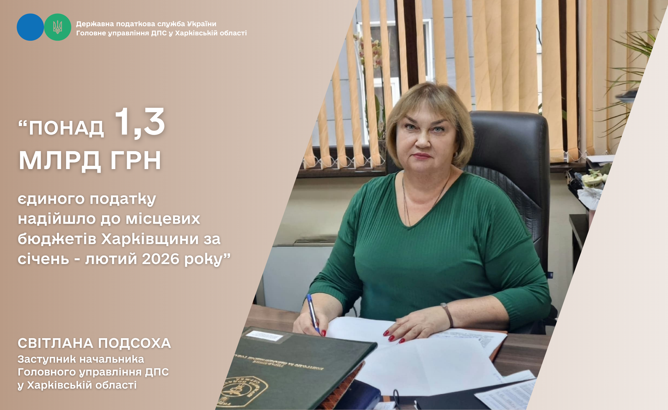 Як зазначила заступник начальника Головного управління ДПС у Харківській області Світлана Подсоха, протягом січня-лютого 2026 року платники податків Харківщини, які обрали спрощену систему оподаткування, обліку та звітності, спрямували до місцевих бюджетів 1 327 млн грн єдиного податку.