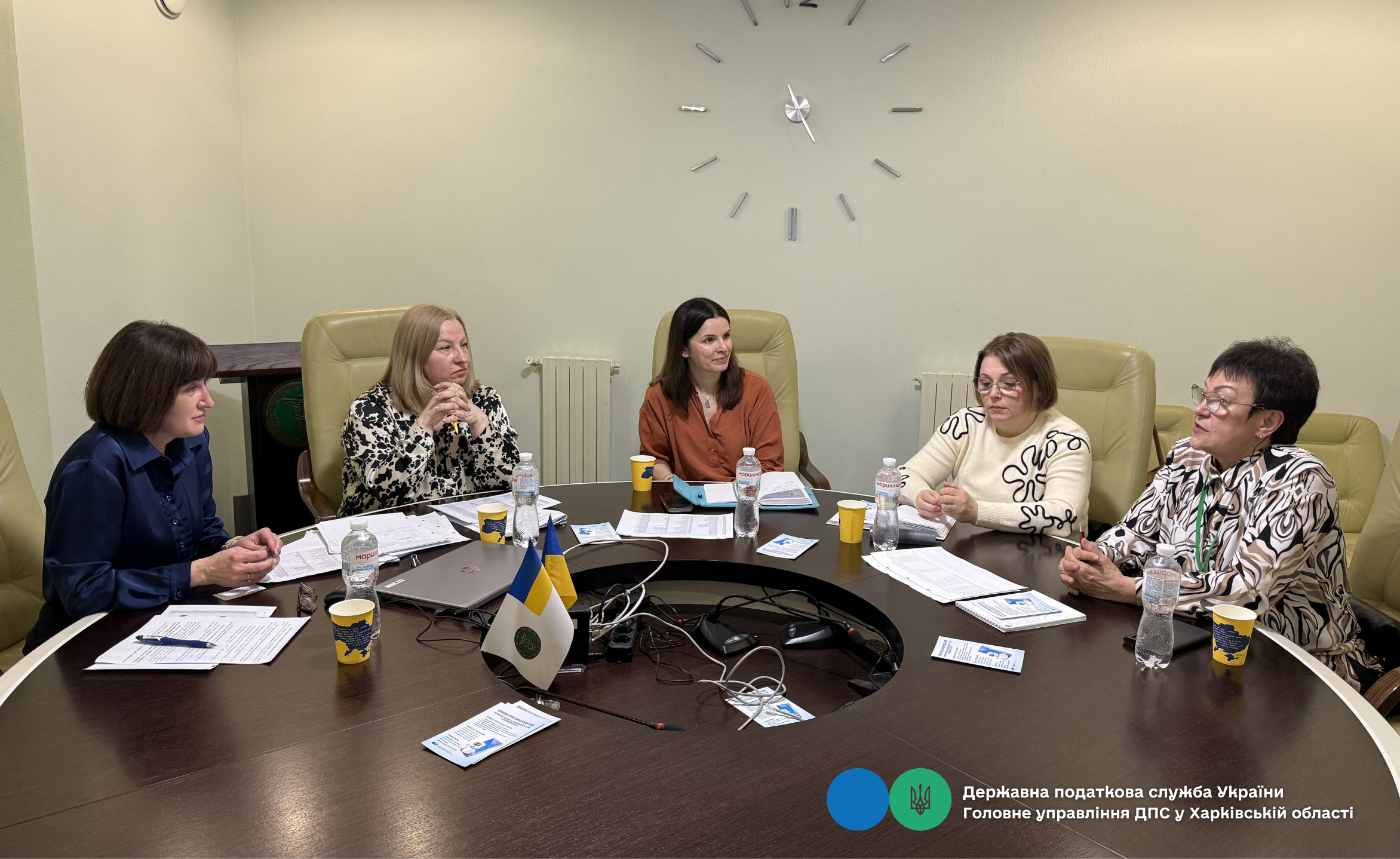 Під час заходу в. о. начальника управління з питань виявлення та опрацювання податкових ризиків Головного управління ДПС у Харківській області Юлія П’яташ та заступник начальника відділу роботи з ризиками управління з питань виявлення та опрацювання податкових ризиків Головного управління ДПС у Харківській області Наталя Олійник поінформували учасників про ініціативу ДПС щодо формування Єдиного каталогу типових таблиць даних платника податку на додану вартість.