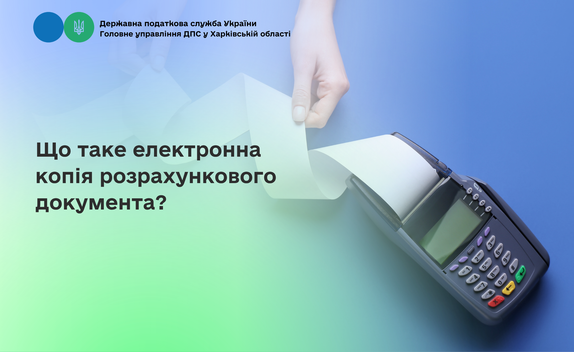 Головне управління ДПС у Харківській області повідомляє, що відповідно до ст. 2 Закону України від 06 липня 1995 року № 265/95-ВР «Про застосування реєстраторів розрахункових операцій у сфері торгівлі, громадського харчування та послуг» із змінами, електронна копія розрахункового документа – це ідентична копія (у формі електронних даних) розрахункового документа, створеного реєстратором розрахункових операцій, яка міститься на контрольній стрічці в пам’яті реєстраторів розрахункових операцій або в пам’яті модемів, які до них приєднані, та/або створена програмним реєстратором розрахункових операцій у електронній формі, що може використовуватися контролюючими органами як податкова інформація та під час проведення перевірок платників податків.