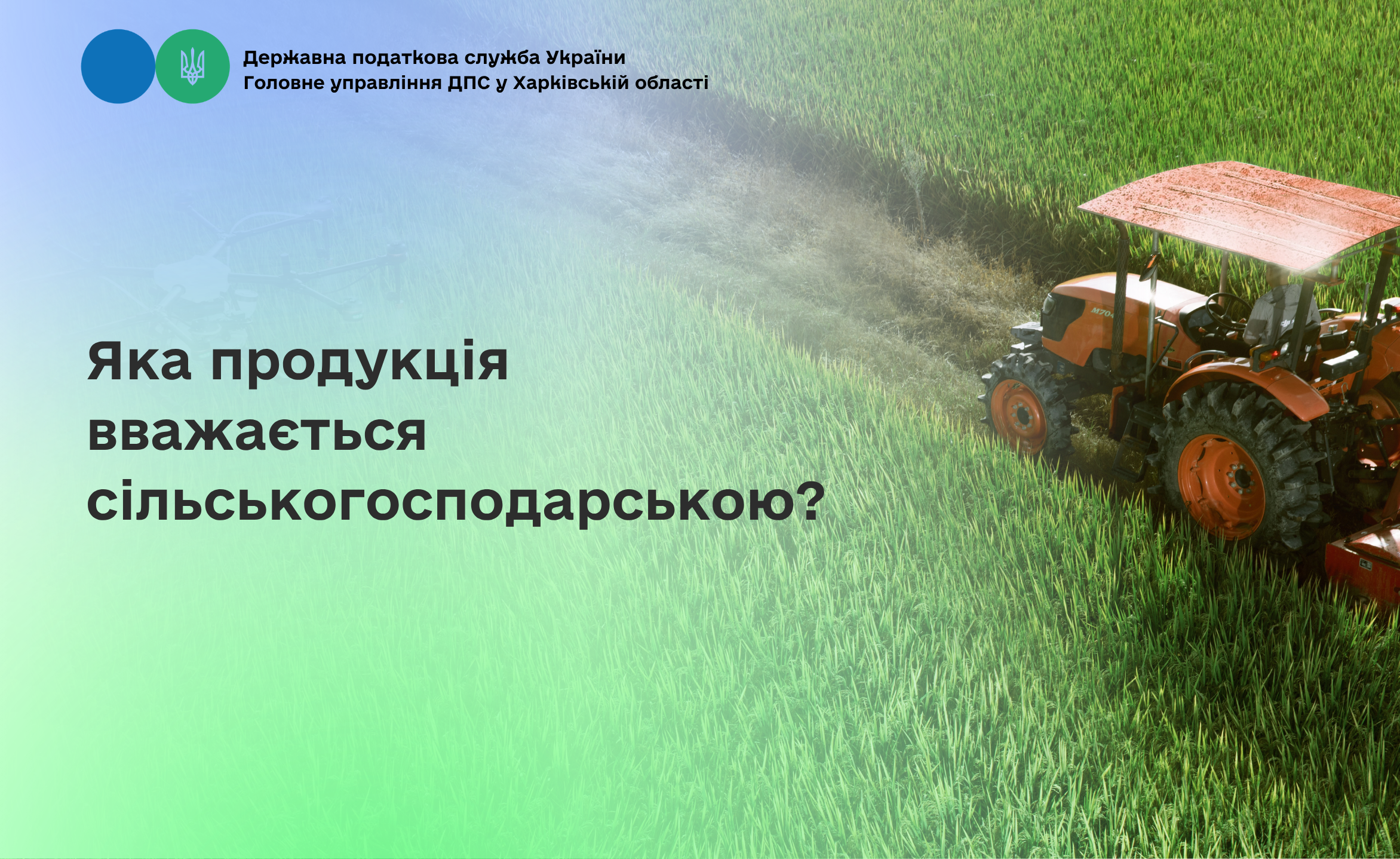 Головне управління ДПС у Харківській області інформує, що відповідно до п. п. 14.1.234 п.14.1 ст. 14 Податкового кодексу України сільськогосподарська продукція (сільськогосподарські товари) – продукція/товари, що підпадають під визначення груп 1-24 УКТ ЗЕД, якщо при цьому такі товари (продукція) вирощуються, відгодовуються, виловлюються, збираються, виготовляються, виробляються, переробляються безпосередньо виробником цих товарів (продукції), а також продукти обробки та переробки цих товарів (продукції), якщо вони були придбані або вироблені на власних або орендованих потужностях (площах) для продажу, переробки або внутрішньогосподарського споживання.