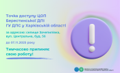Віддалена точка доступу ЦОП Берестинської ДПІ тимчасово припиняє роботу!