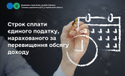 Головне управління ДПС у Харківській області повідомляє, що відповідно до абзацу першого п. 295.7 ст. 295 Податкового кодексу України від 02 грудня 2010 року № 2755-VI із змінами та доповненнями (далі – ПКУ) єдиний податок, нарахований за перевищення обсягу доходу, сплачується протягом 10 календарних днів після граничного строку подання податкової декларації за податковий (звітний) квартал (крім електронних резидентів (е-резидентів).