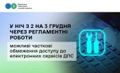 У ніч з 2 на 3 грудня через регламентні роботи можливі часткові обмеження доступу до електронних сервісів ДПС