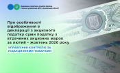 Отже, з метою забезпечення відображення в Декларації суми акцизного податку, розрахованої з втрачених марок акцизного податку ДПС рекомендує платникам акцизного податку, у яких виникли підстави для декларування інформації щодо втрачених марок акцизного податку у податковій звітності за лютий - жовтень 2026 року, відображати такі показники у додатку 9 до Декларації «Доповнення до декларації акцизного податку відповідно до пункту 46.4 статті 46 глави 2 розділу ІІ Кодексу», відповідно до Порядку заповнення та подання Декларації, використовуючи показники, які містились у скасованому додатку 5 Декларації.