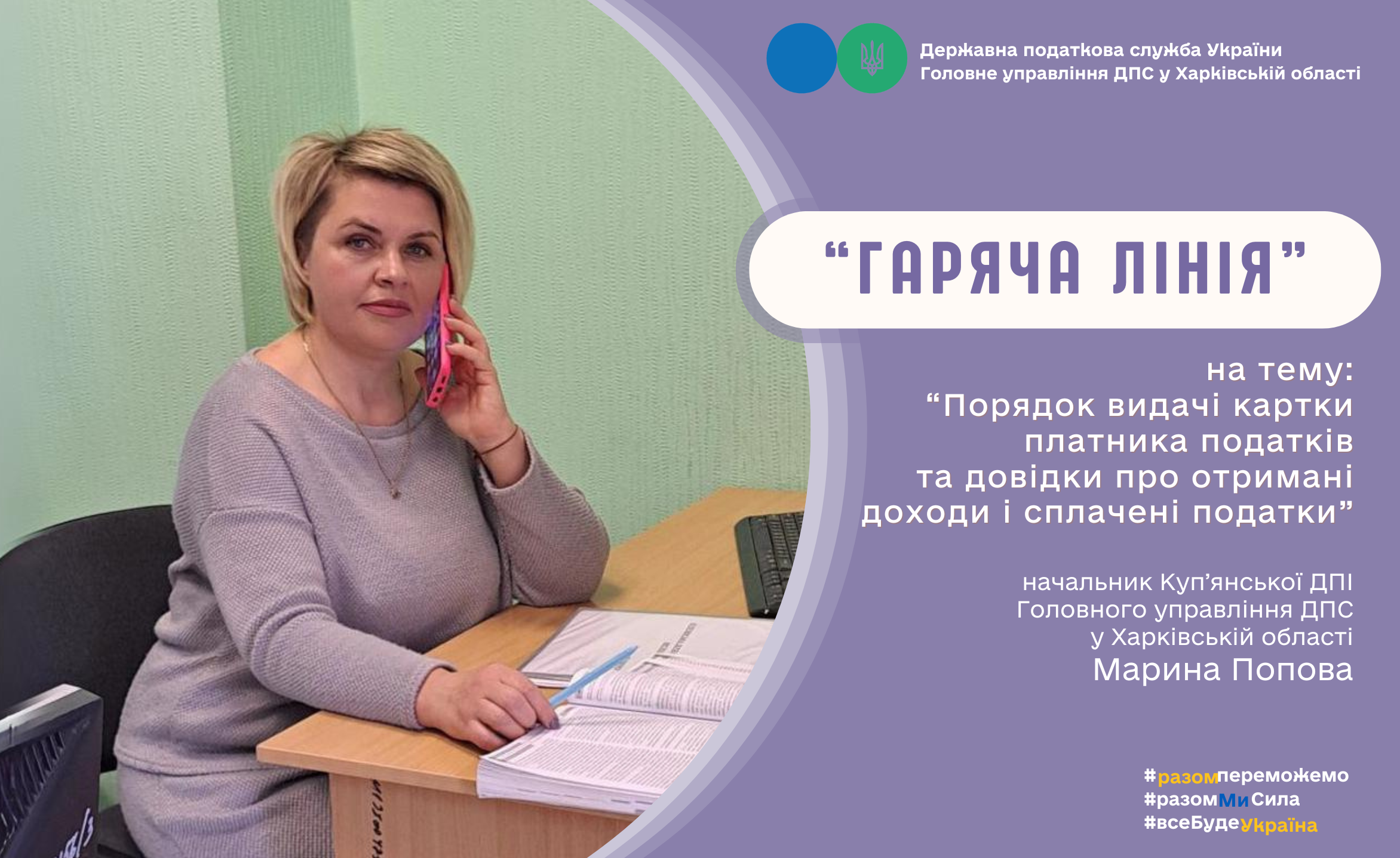 Начальник Куп’янської ДПІ Головного управління ДПС у Харківській області Марина Попова провела сеанс телефонного зв’язку «гаряча лінія».