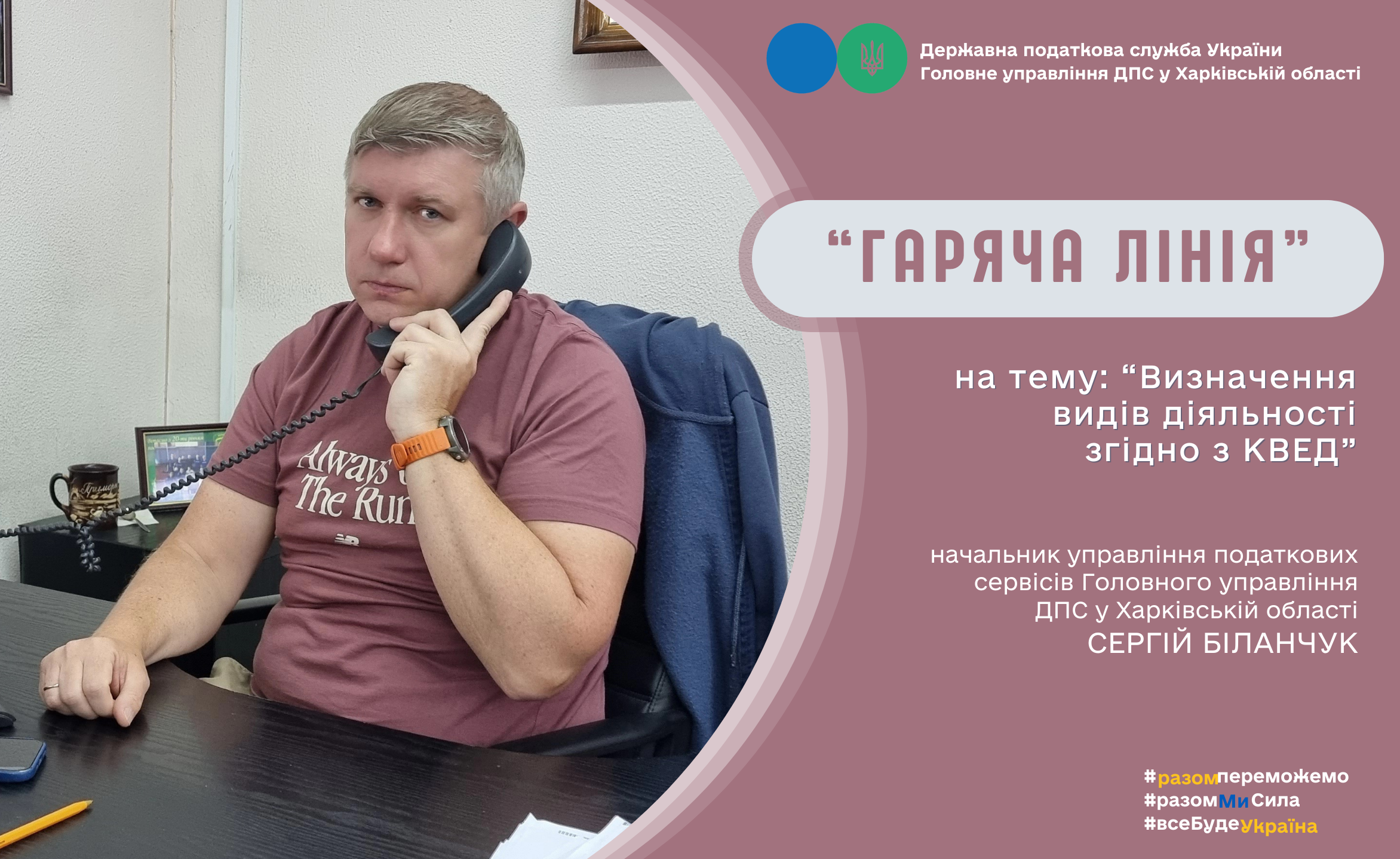 Начальник управління податкових сервісів Головного управління ДПС у Харківській області Сергій Біланчук провів сеанс телефонного зв’язку «гаряча лінія». Під час спілкування з платниками податків податківець  відповідав на питання стосовно визначення видів діяльності згідно з Класифікацією видів економічної діяльності ДК 009:2010 Національного класифікатора України.