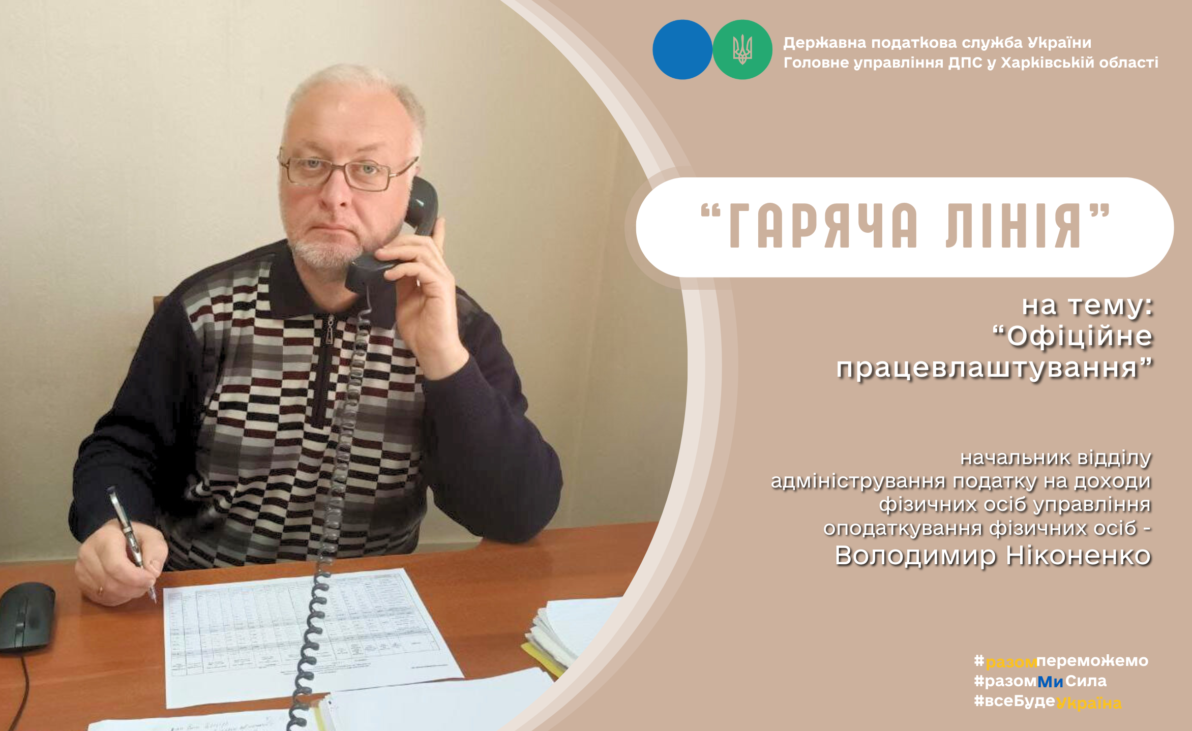 У Головному управлінні ДПС у Харківській області відбувся сеанс телефонного зв’язку «гаряча лінія» на тему: «Офіційне працевлаштування». На запитання платників податків відповідав начальник відділу адміністрування податку на доходи фізичних осіб управління оподаткування фізичних осіб Володимир Ніконенко.