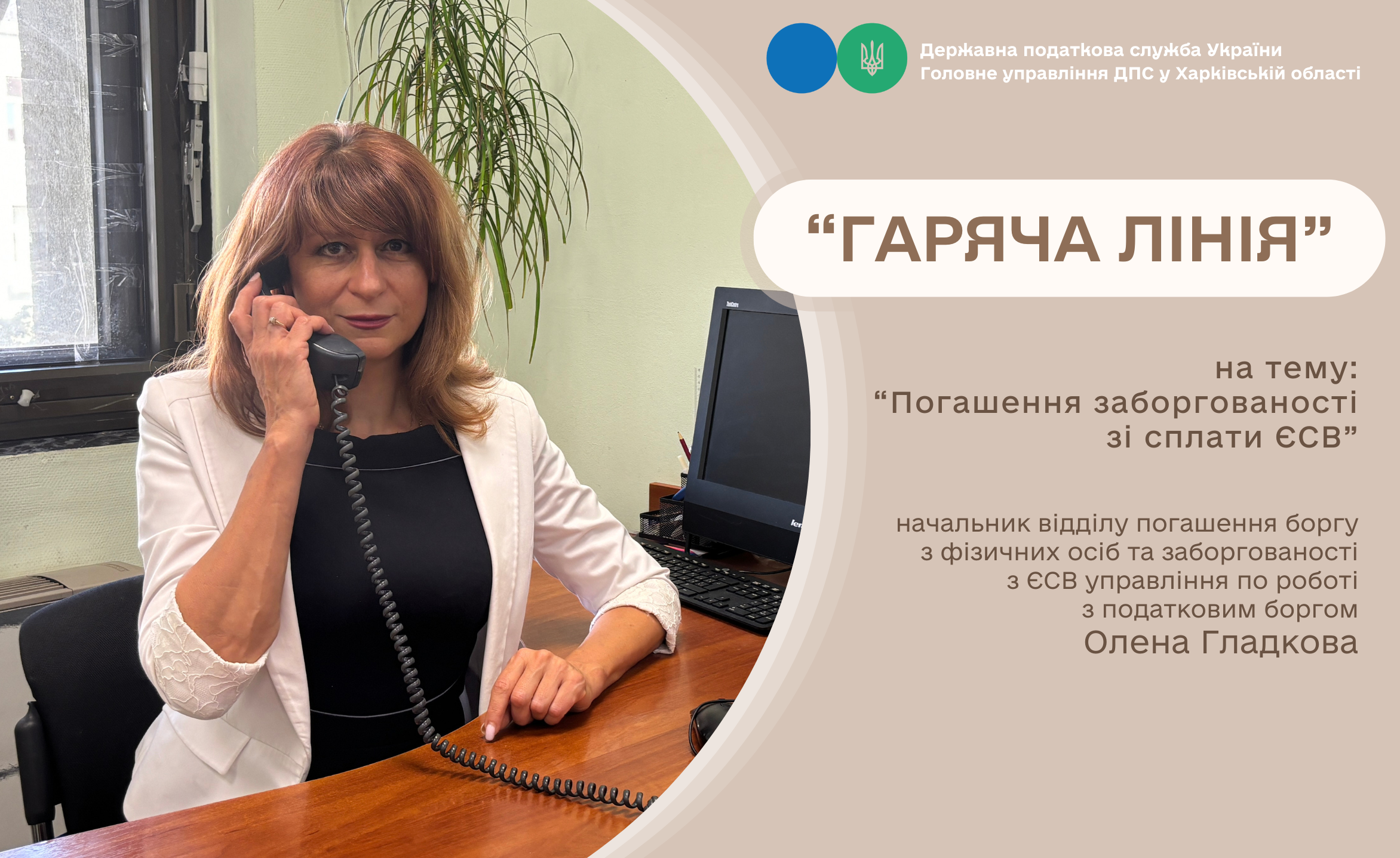 Начальник відділу погашення боргу з фізичних осіб та заборгованості з ЄСВ управління по роботі з податковим боргом Головного управління ДПС у Харківській області Олена Гладкова провела черговий сеанс телефонного зв’язку «гаряча лінія» з питань погашення заборгованості зі сплати єдиного соціального внеску (далі – ЄСВ).