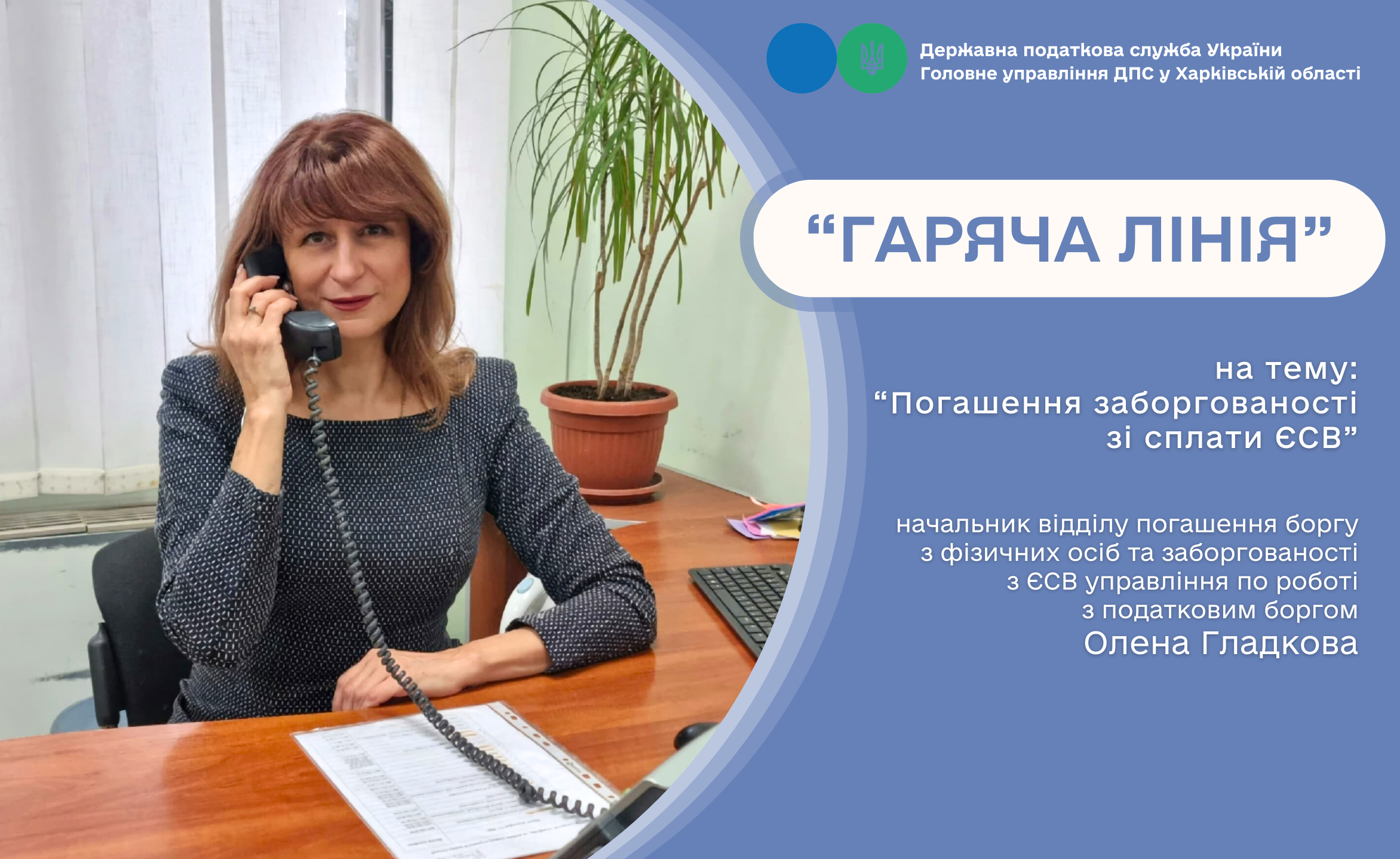 У Головному управлінні ДПС у Харківській області відбувся черговий сеанс телефонного зв'язку «гаряча лінія» на тему погашення податкового боргу з фізичних осіб та єдиного внеску. На запитання платників відповідала Олена Гладкова, начальник відділу погашення боргу з фізичних осіб та заборгованості з ЄСВ управління по роботі з податковим боргом Головного управління ДПС у Харківській області.
