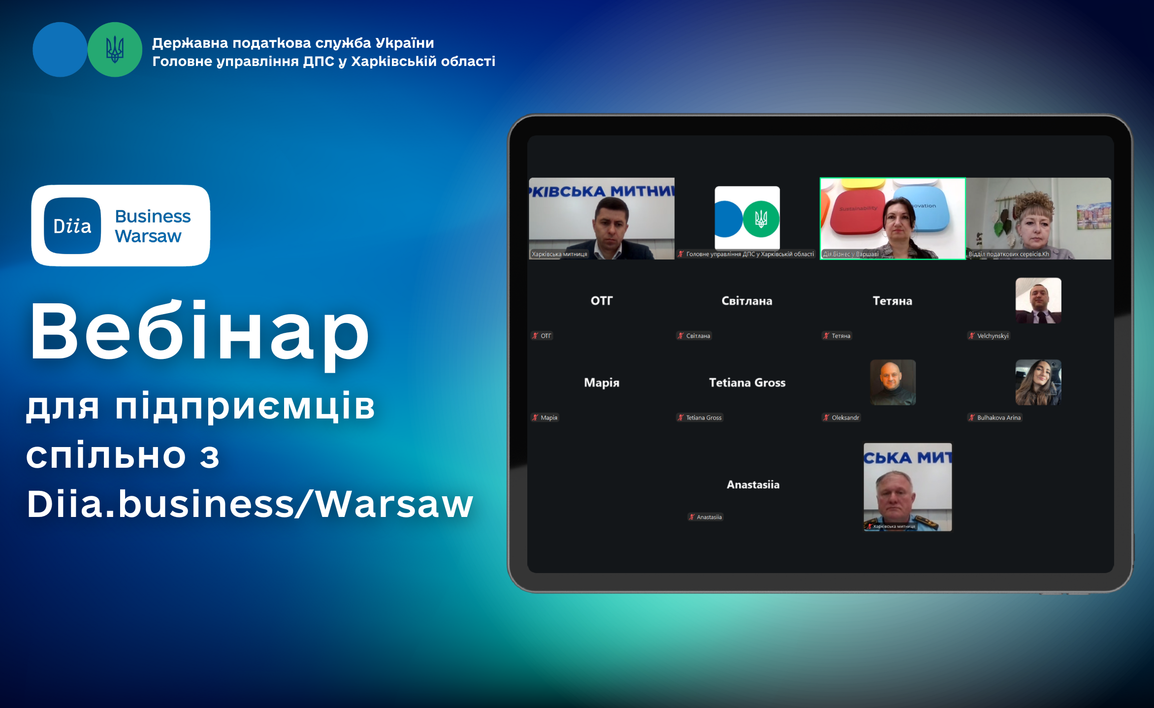 За ініціативи Diia.Business І Warsaw відбувся спільний вебінар, який провели фахівці Головного управління ДПС у Харківській області та Харківської митниці. Підприємцям, які знаходяться в Україні та тим, хто через небезпеку вимушений був виїхати до Польщі, розповіли про електронні сервіси, що надаються Державною податково службою України і Державною митною службою України.